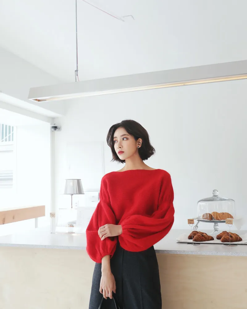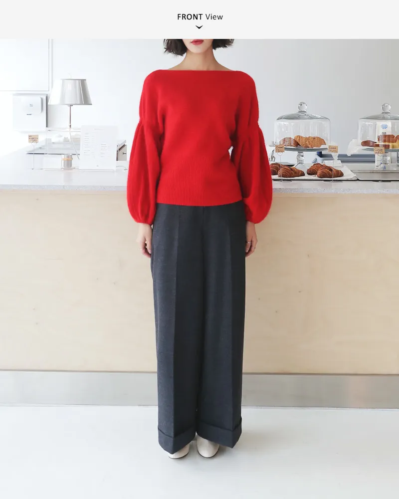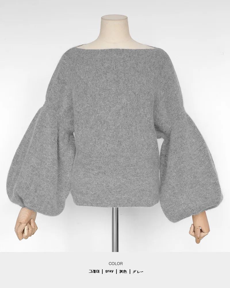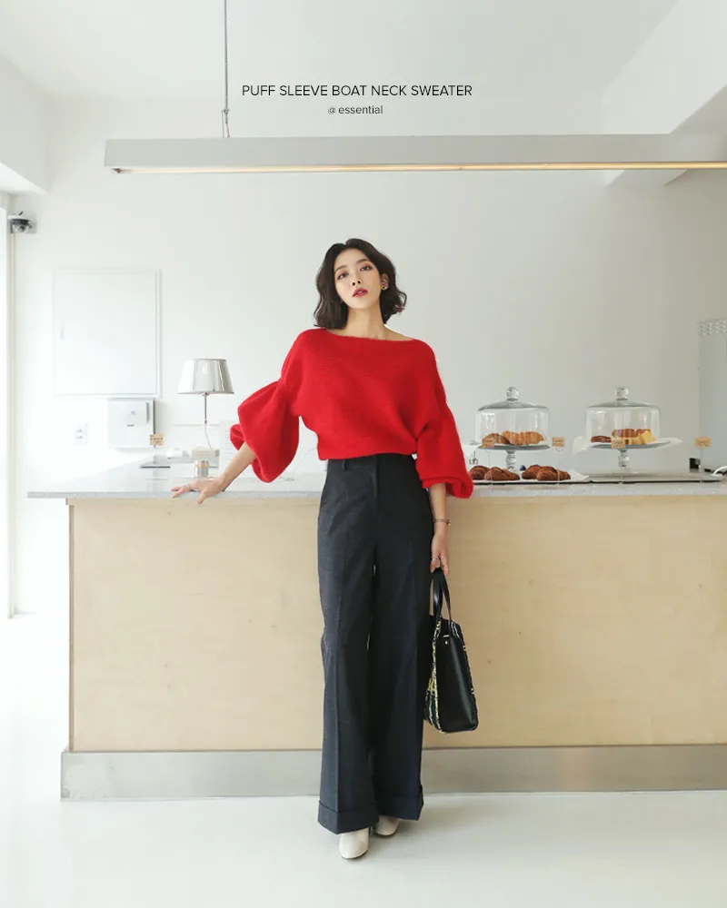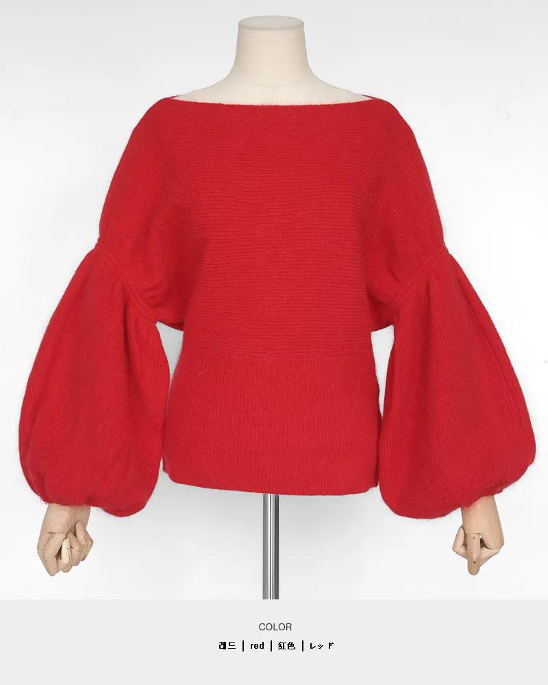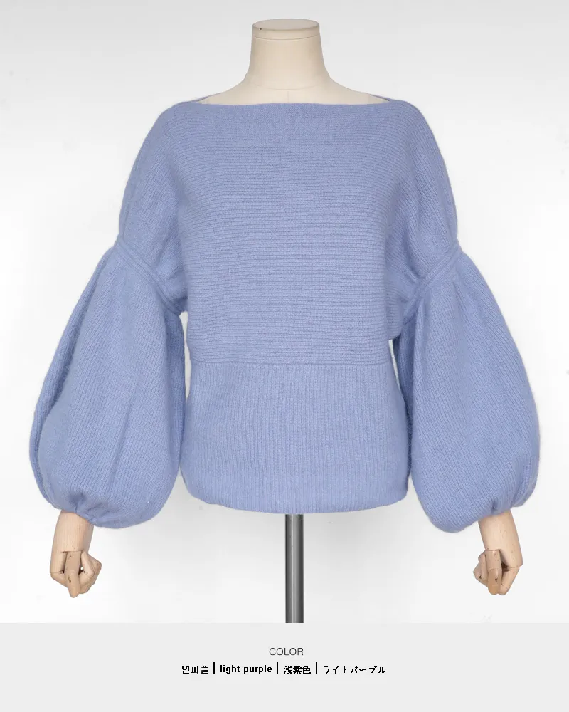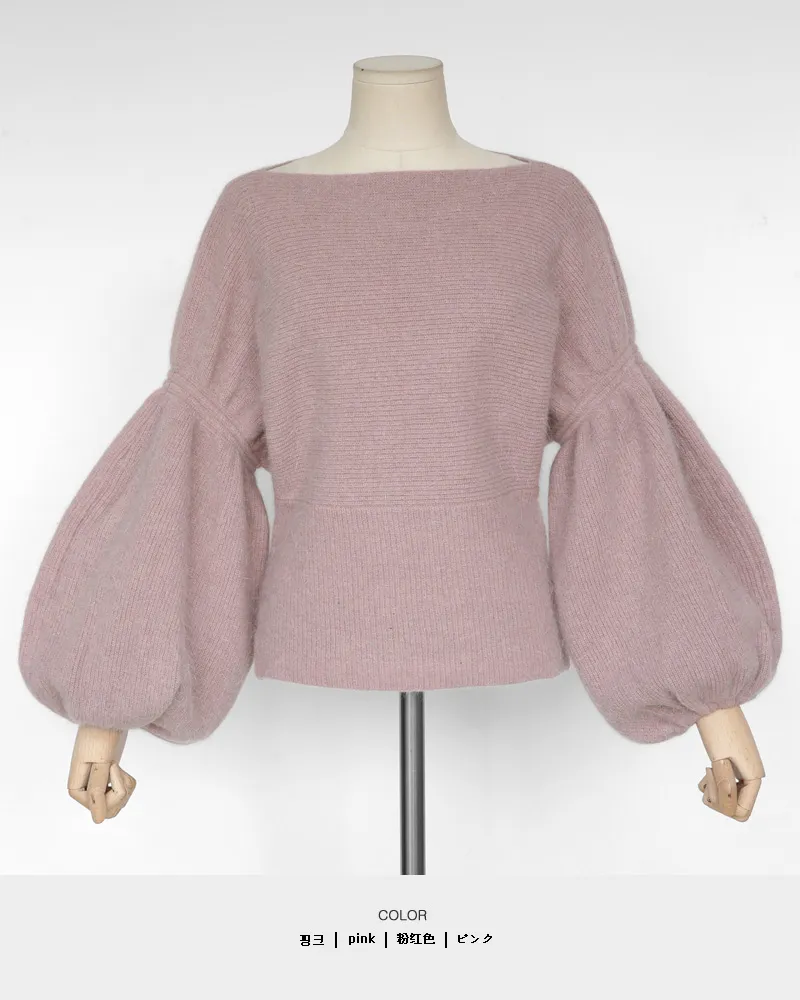 【ボートネックパフスリーブ二ットプルオーバー】