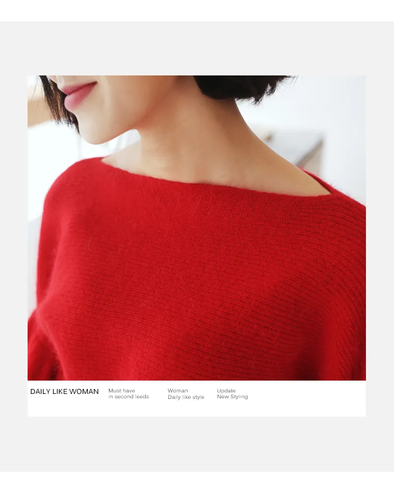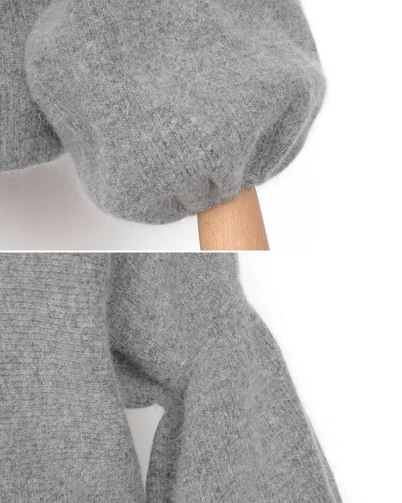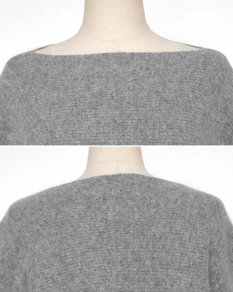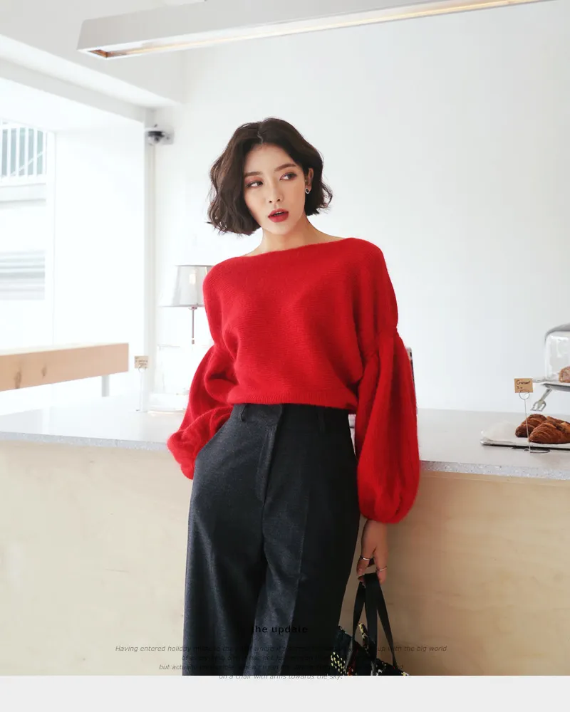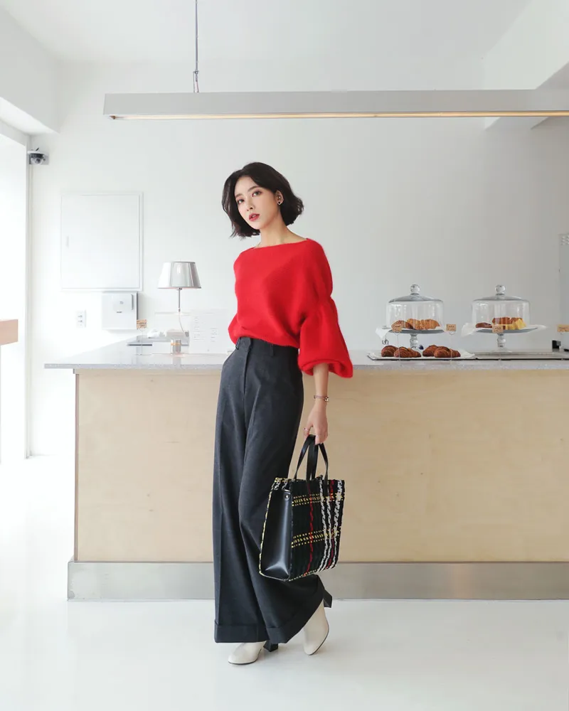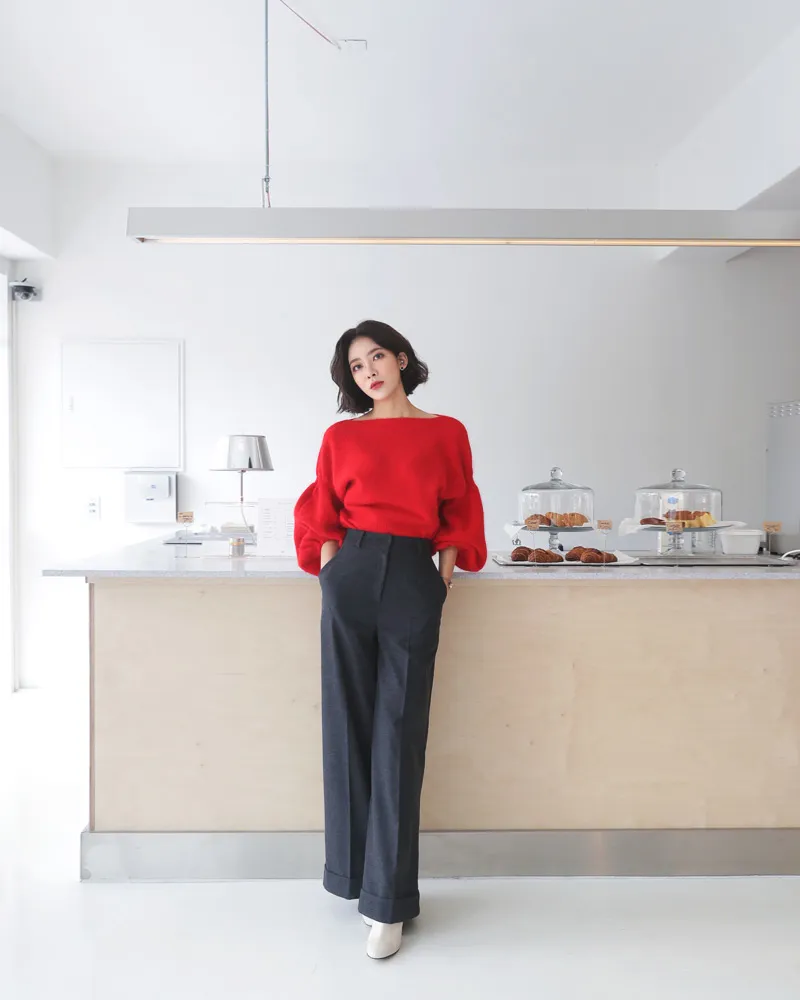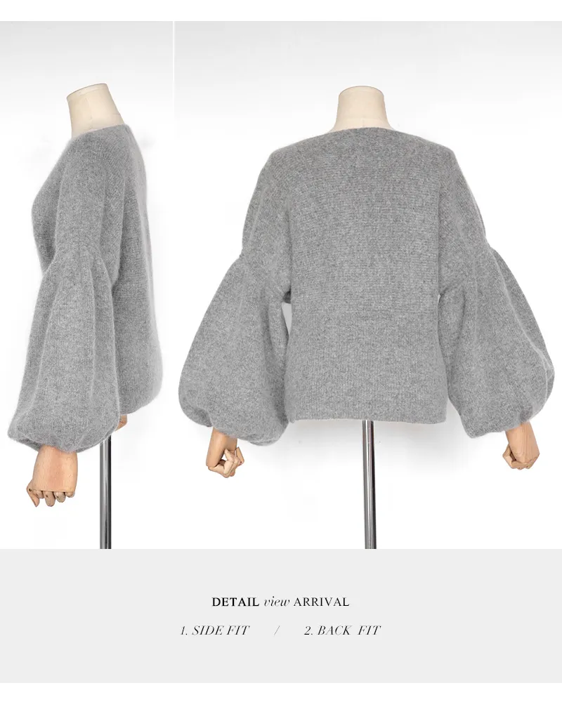 【ボートネックパフスリーブ二ットプルオーバー】