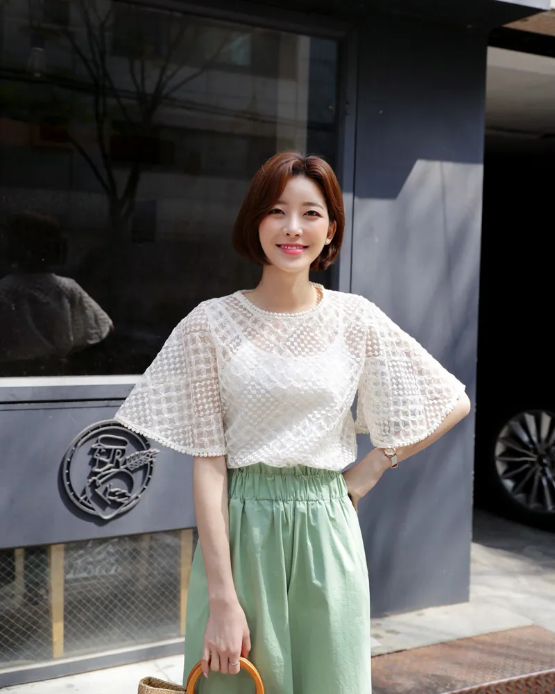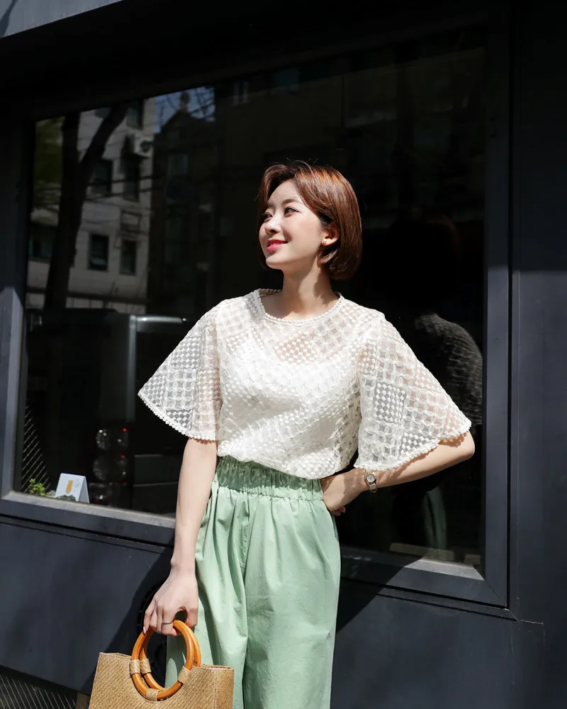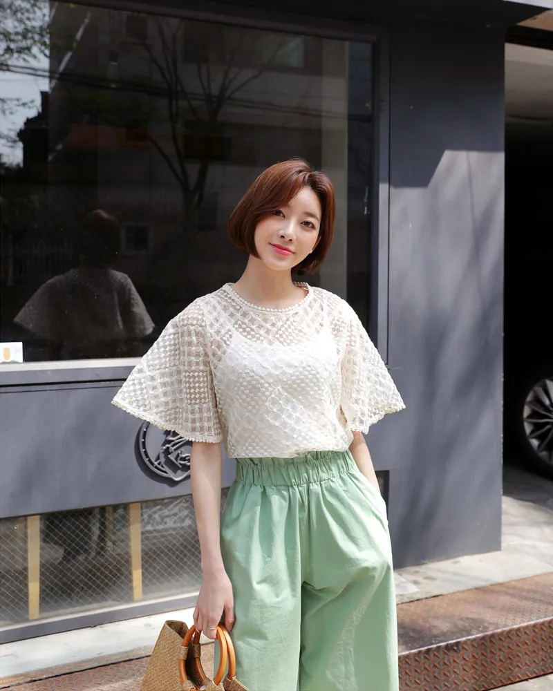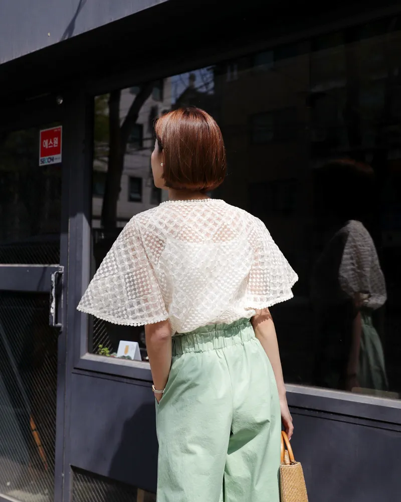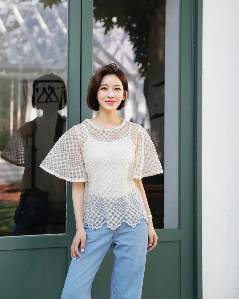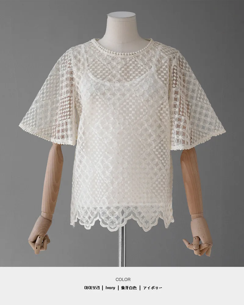 【キャミSETフレアスリーブレースブラウス】