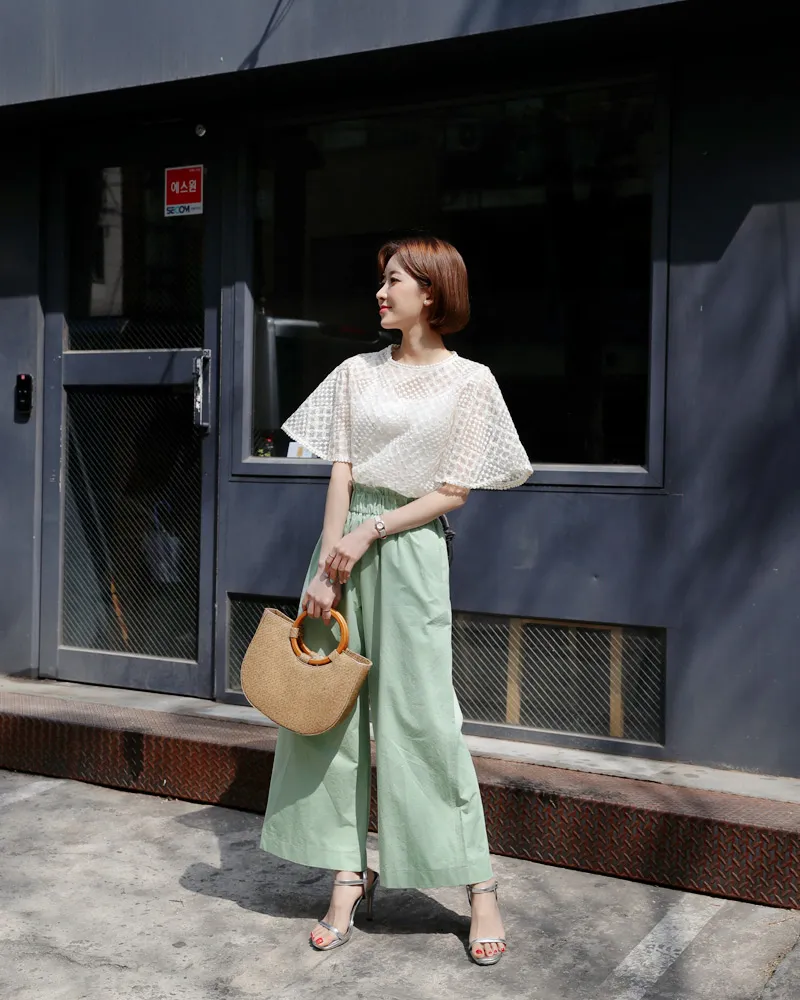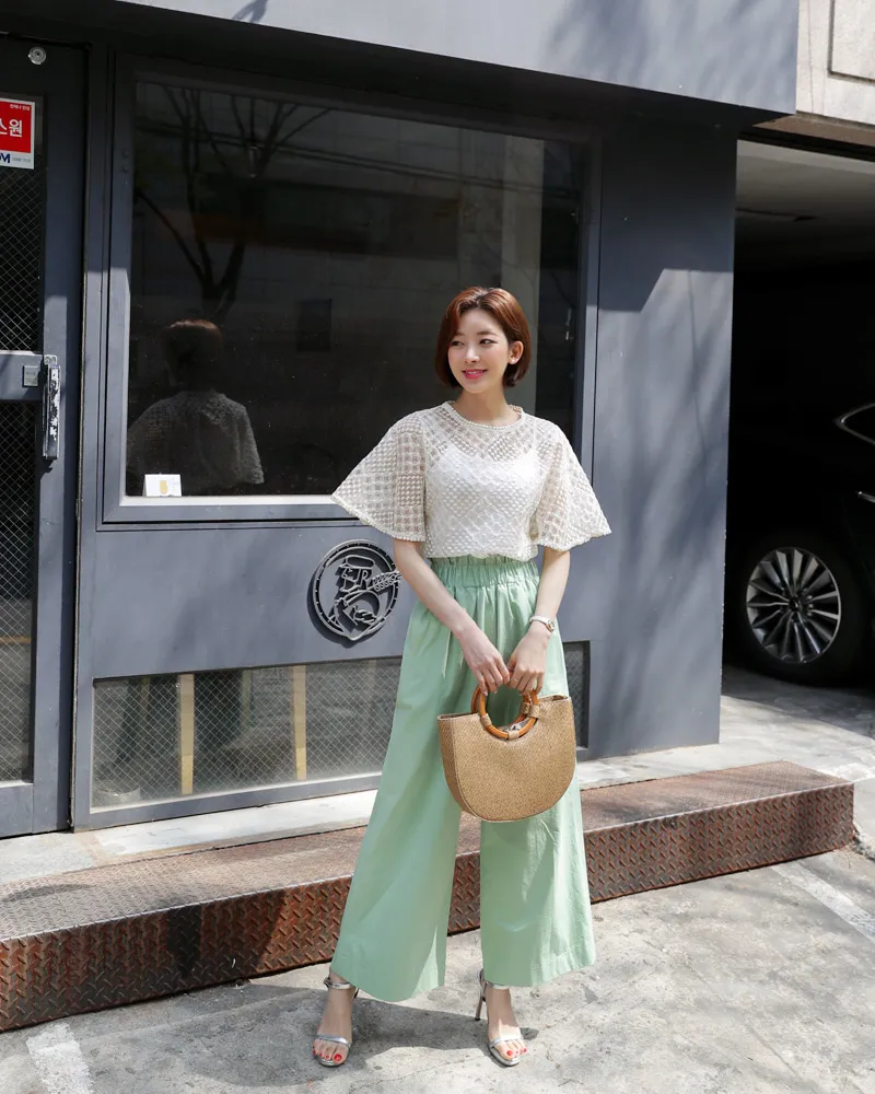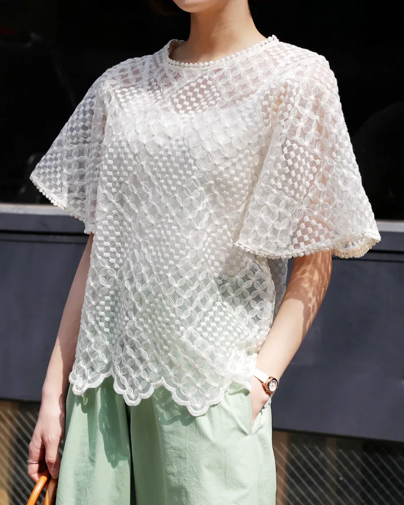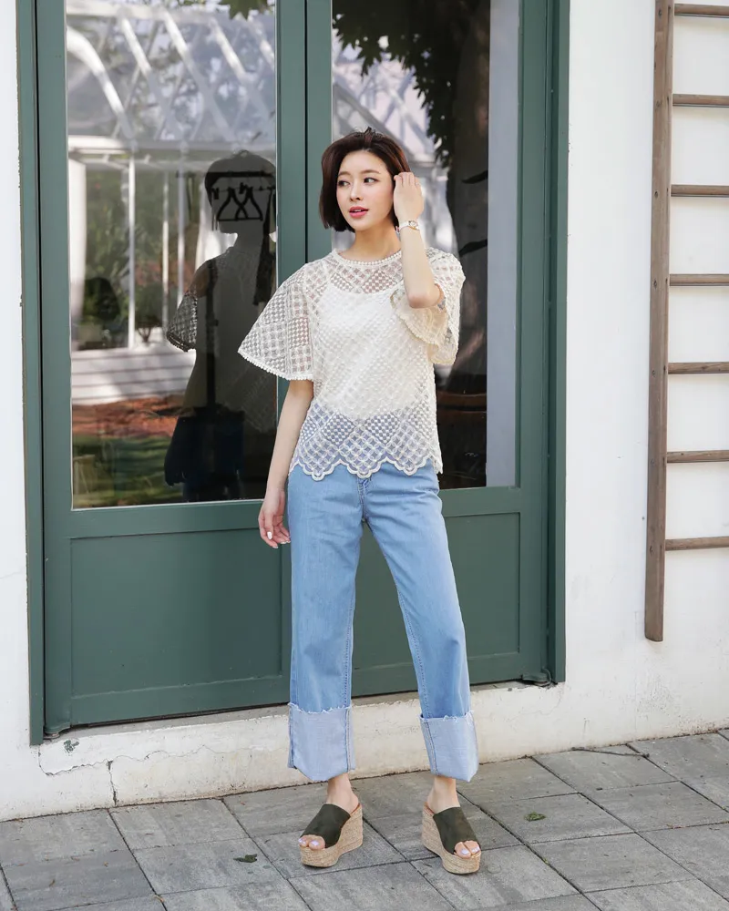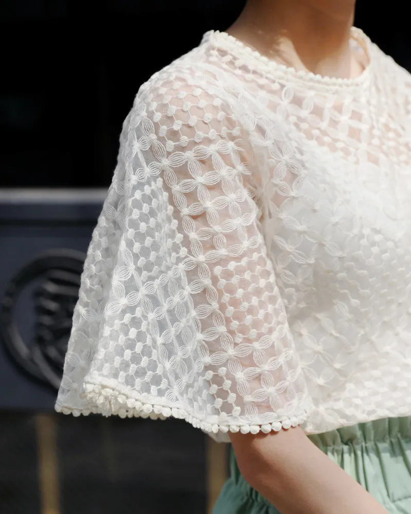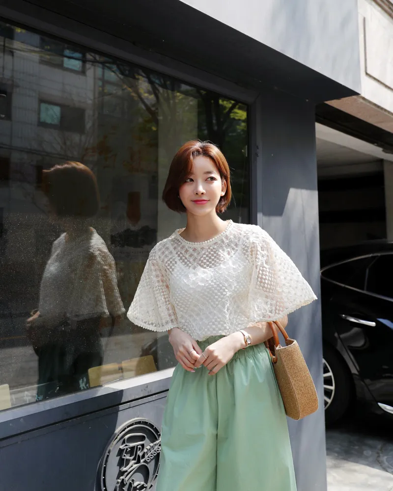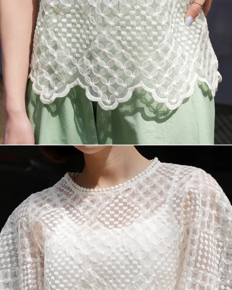 【キャミSETフレアスリーブレースブラウス】