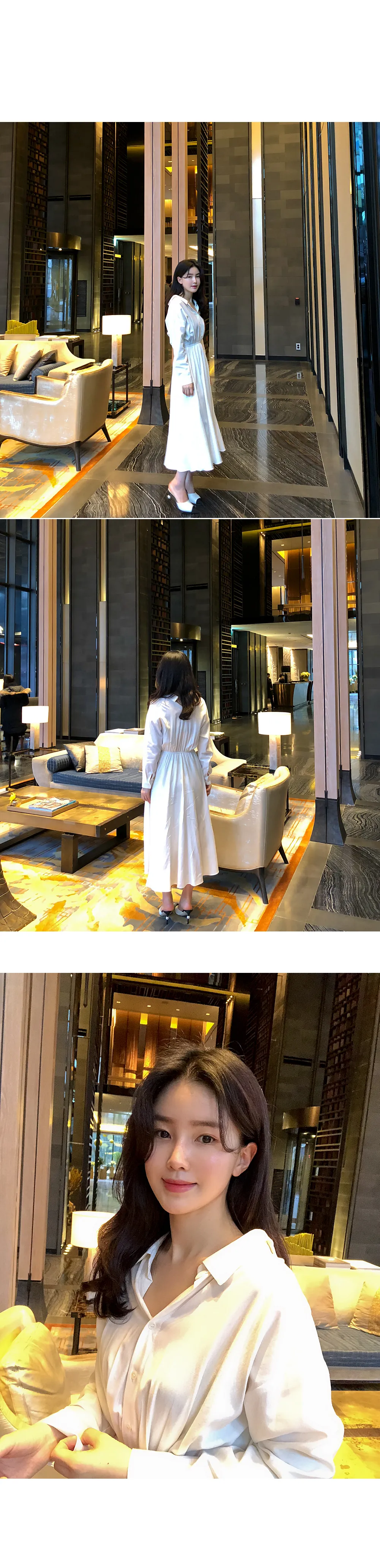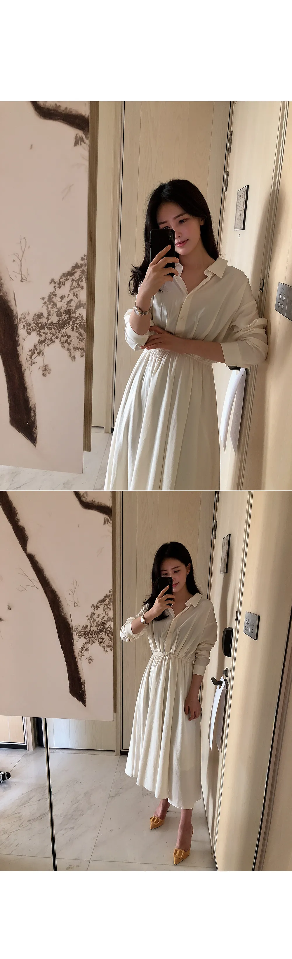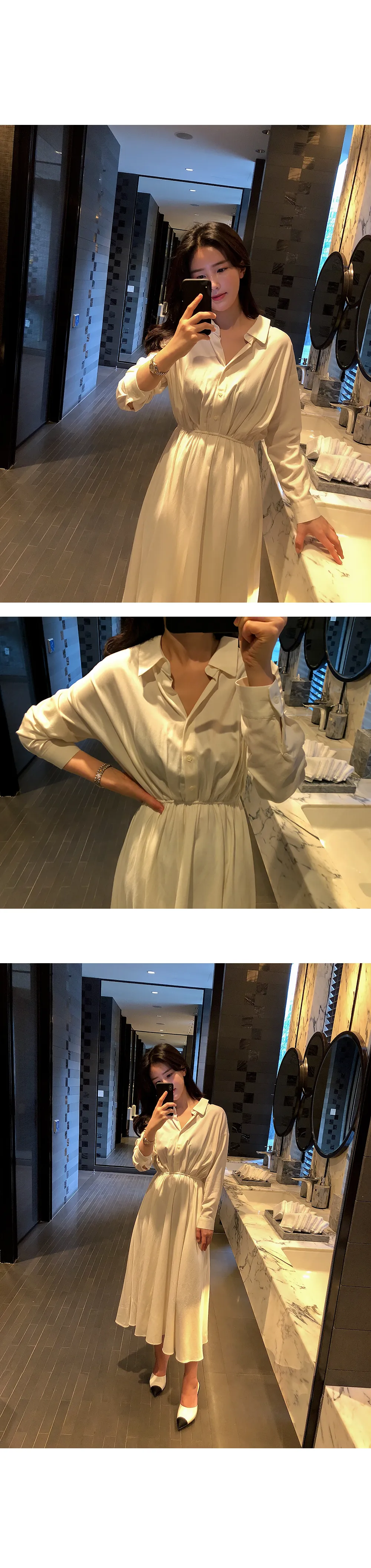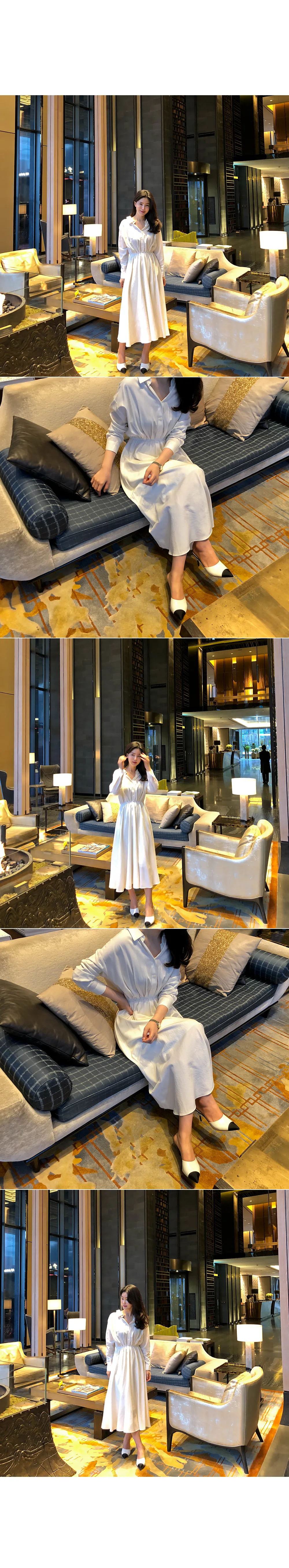 ノーカラーラウンドネックダブルボタン肩パッドループロングAライン長袖ボタンスリーブピンタックフレア無地ワンピースストラップセット(バックルあり)