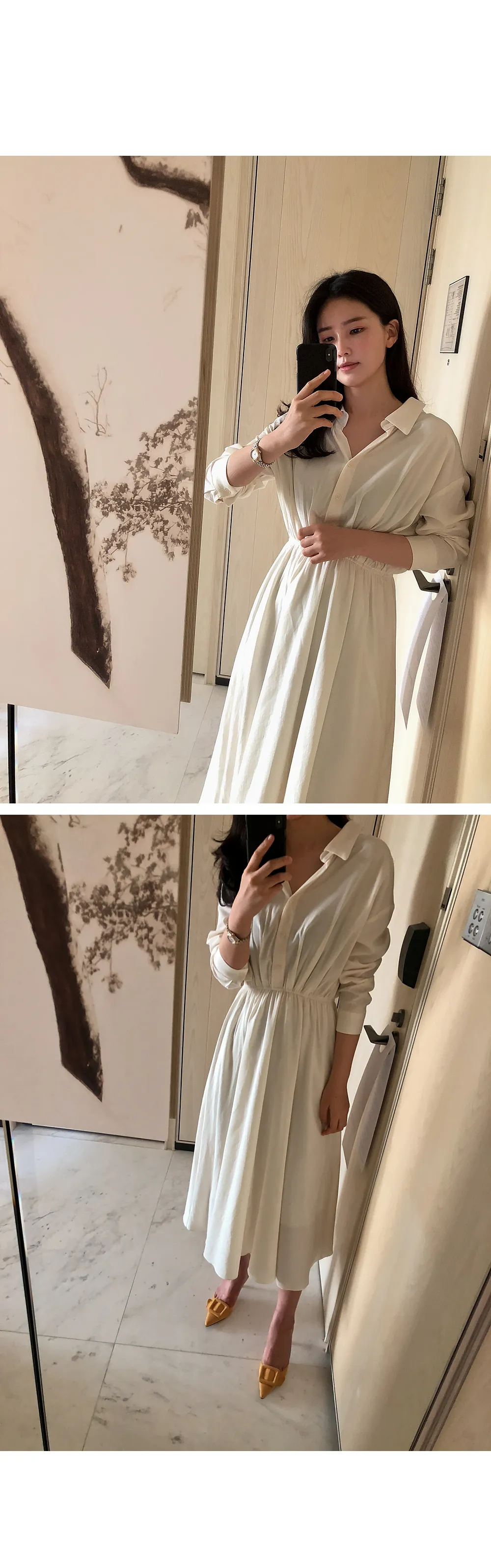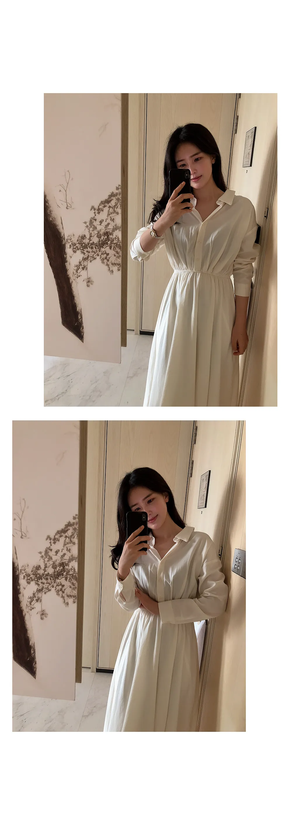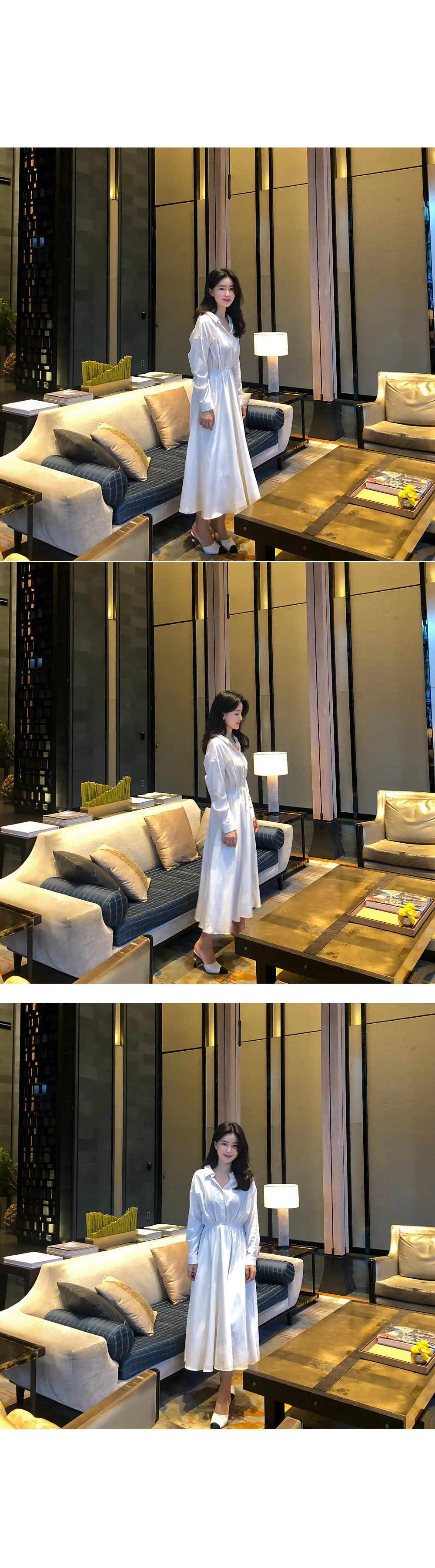 ノーカラーラウンドネックダブルボタン肩パッドループロングAライン長袖ボタンスリーブピンタックフレア無地ワンピースストラップセット(バックルあり)