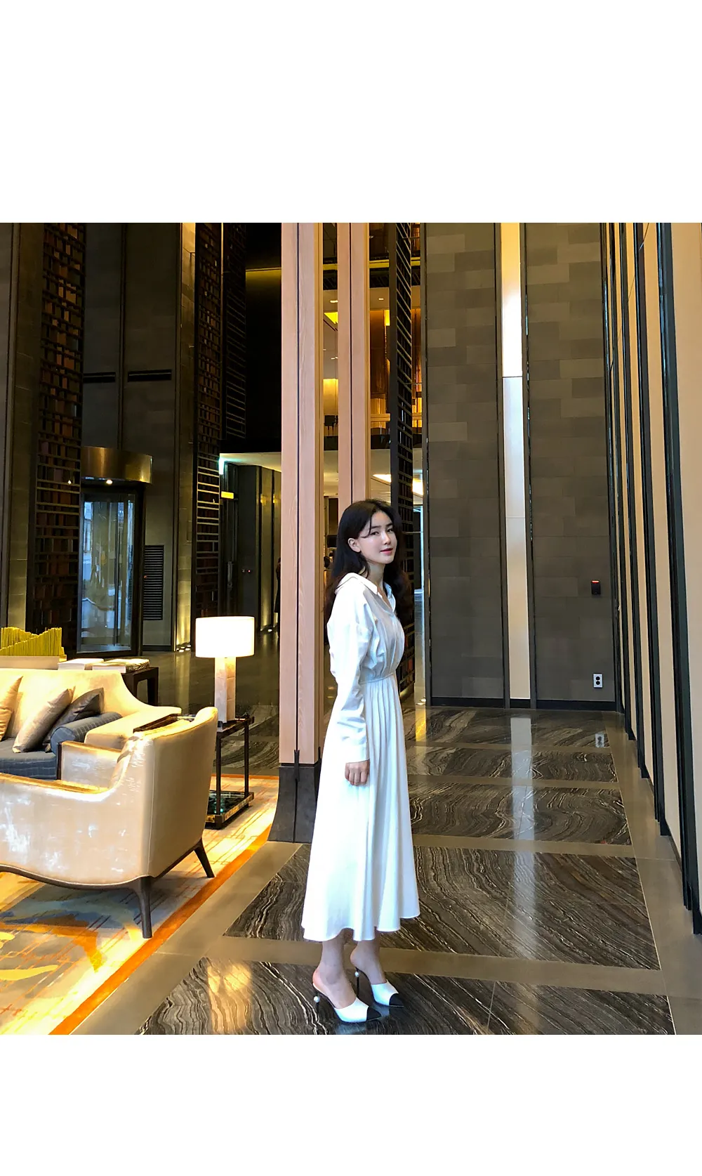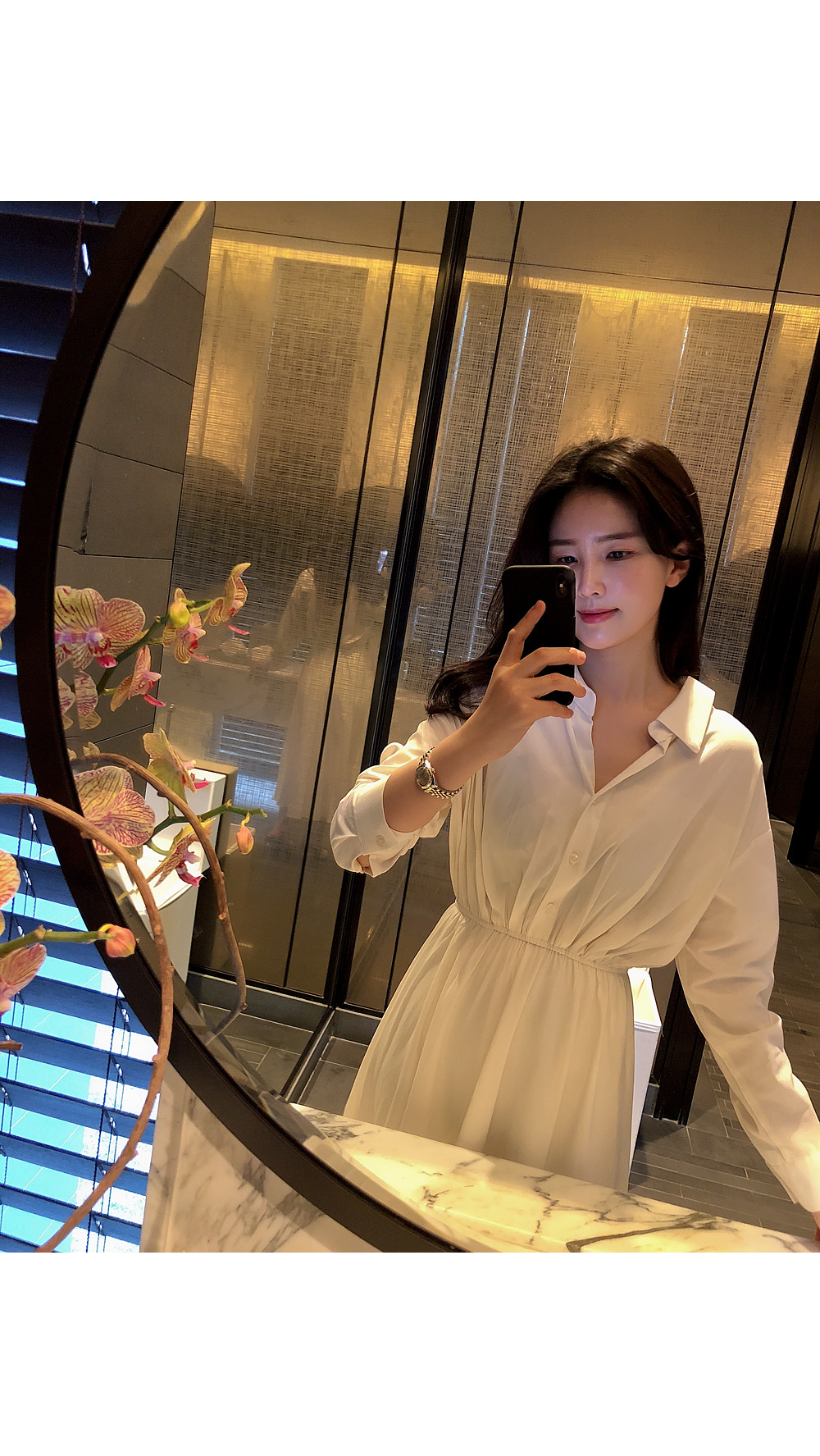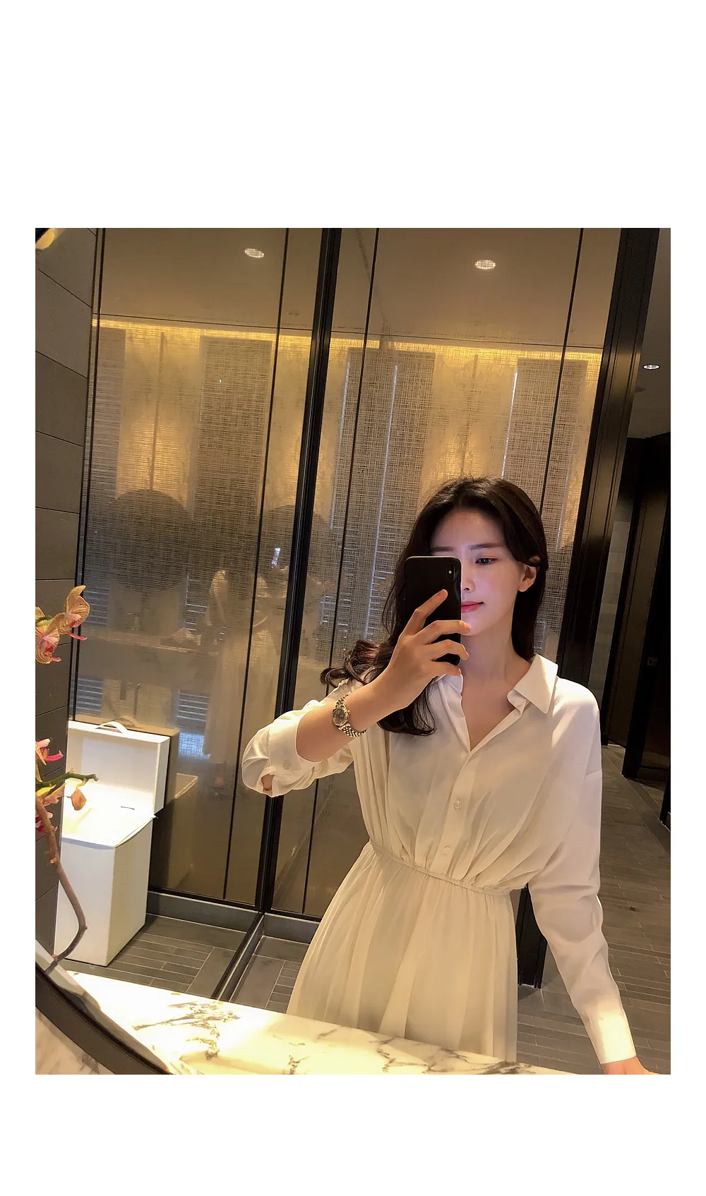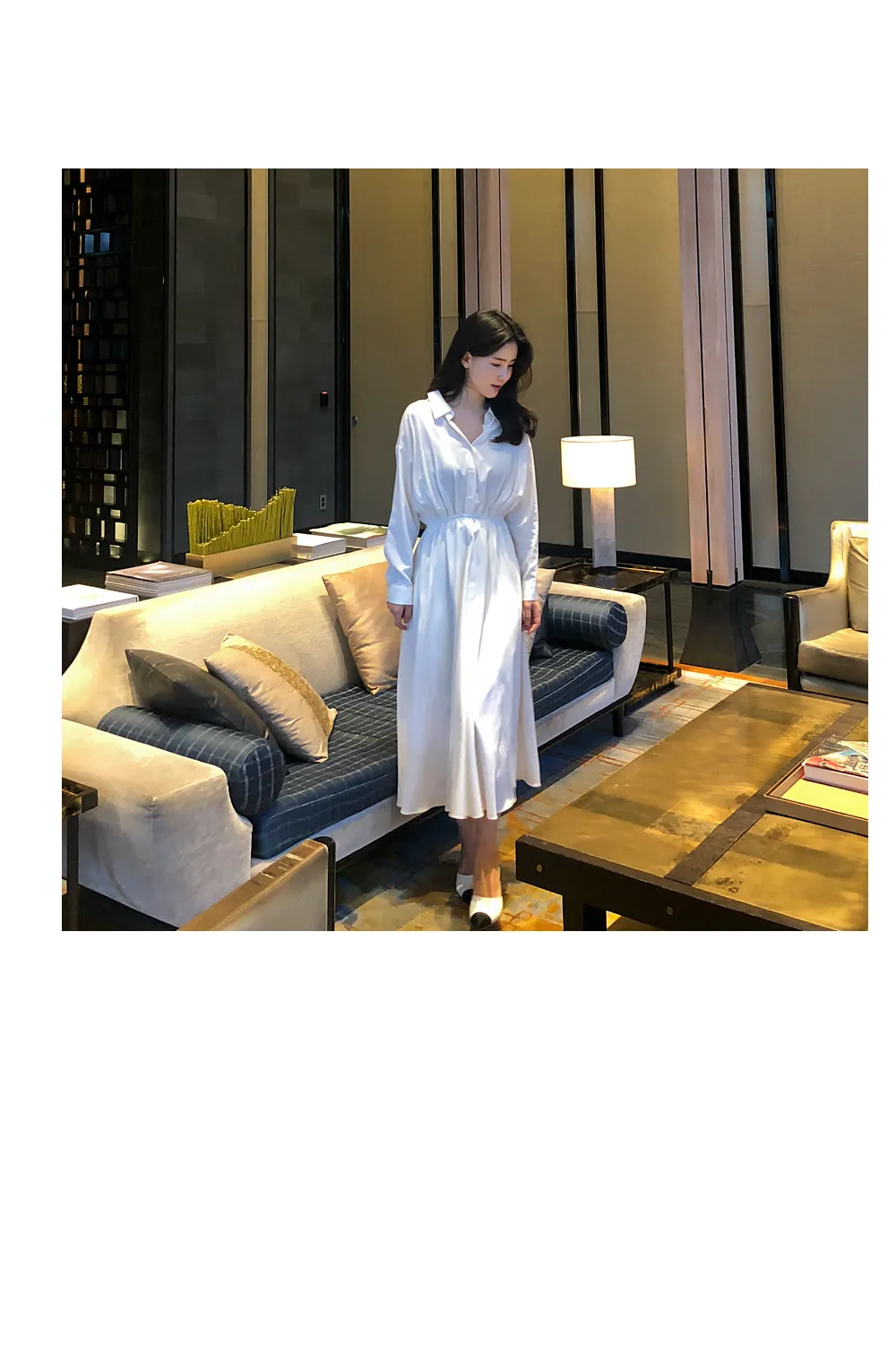 ノーカラーラウンドネックダブルボタン肩パッドループロングAライン長袖ボタンスリーブピンタックフレア無地ワンピースストラップセット(バックルあり)