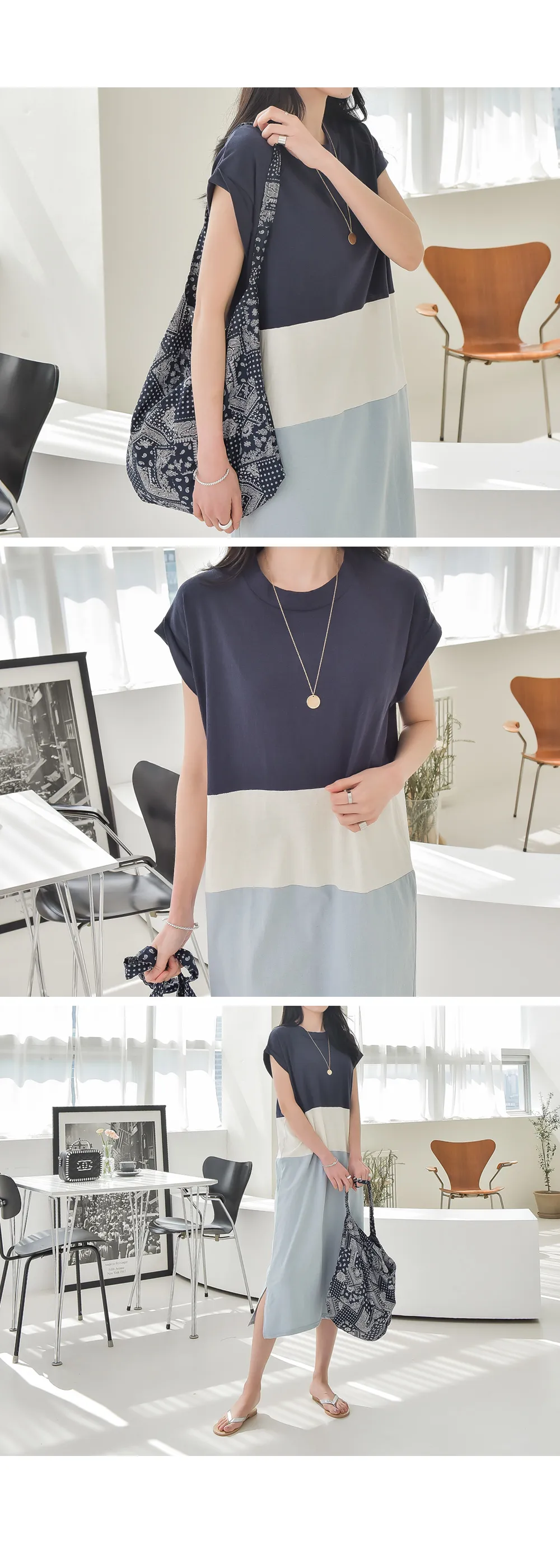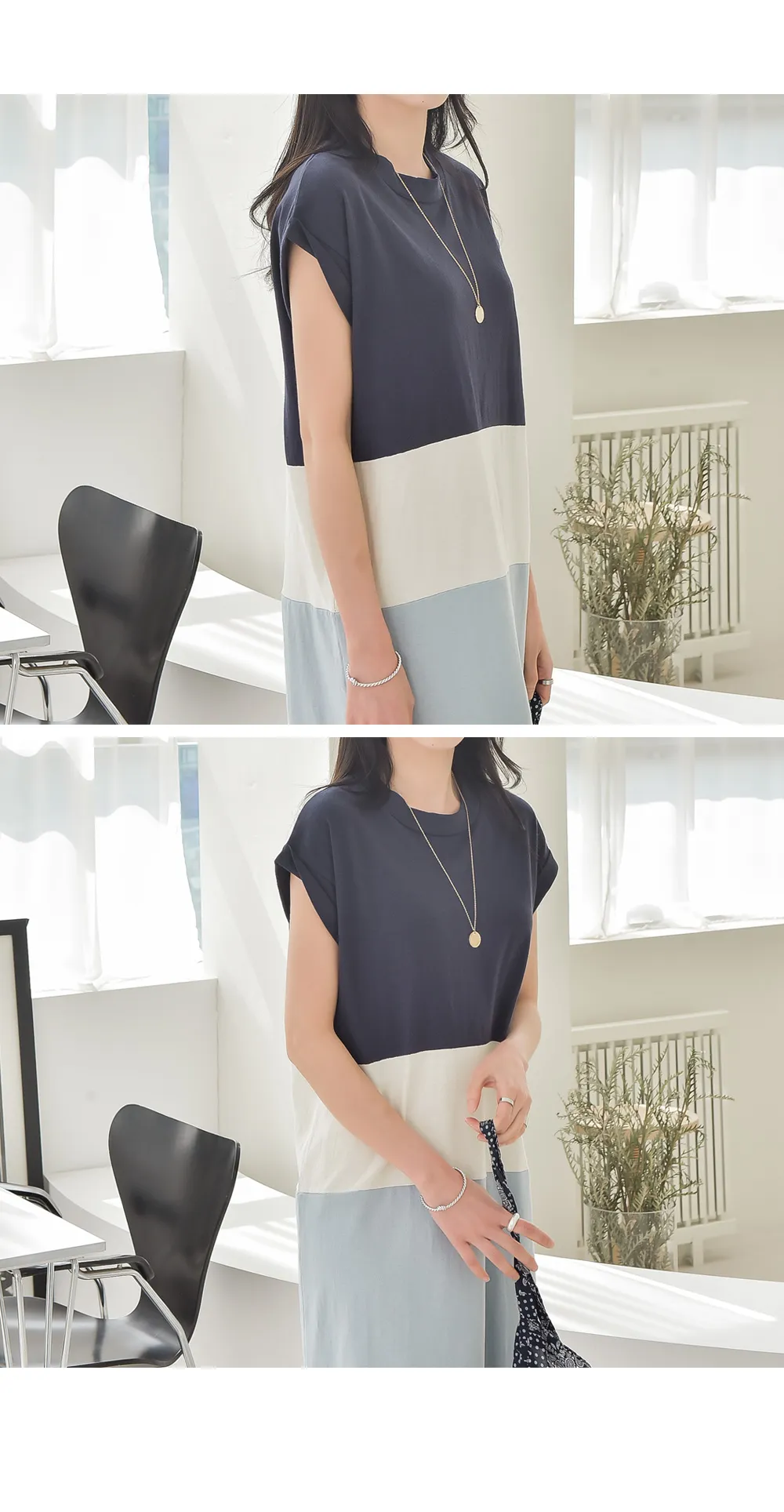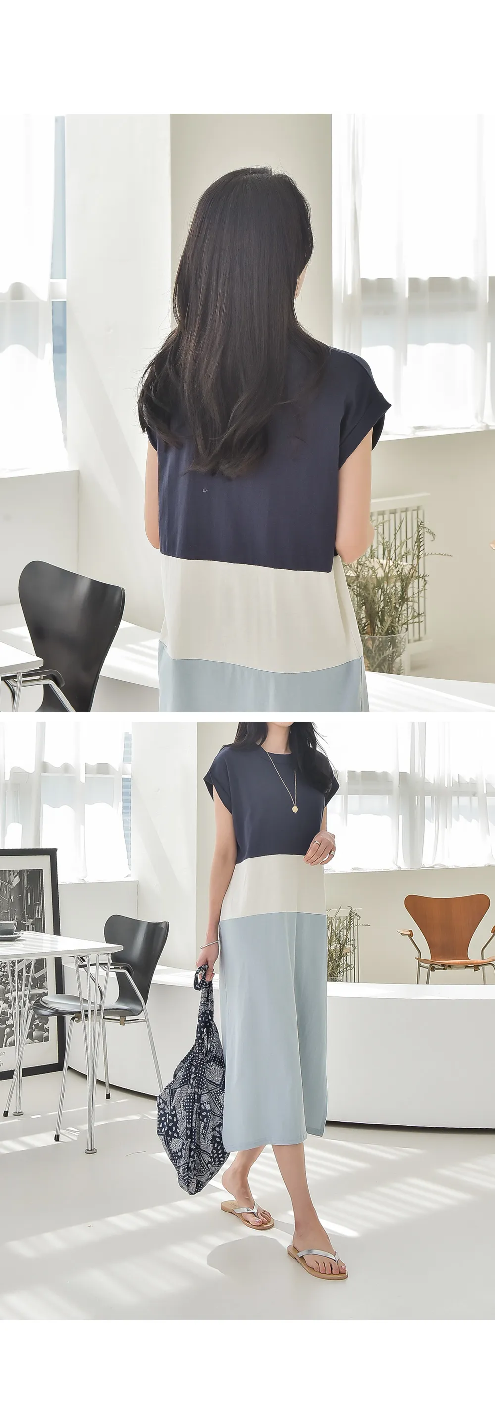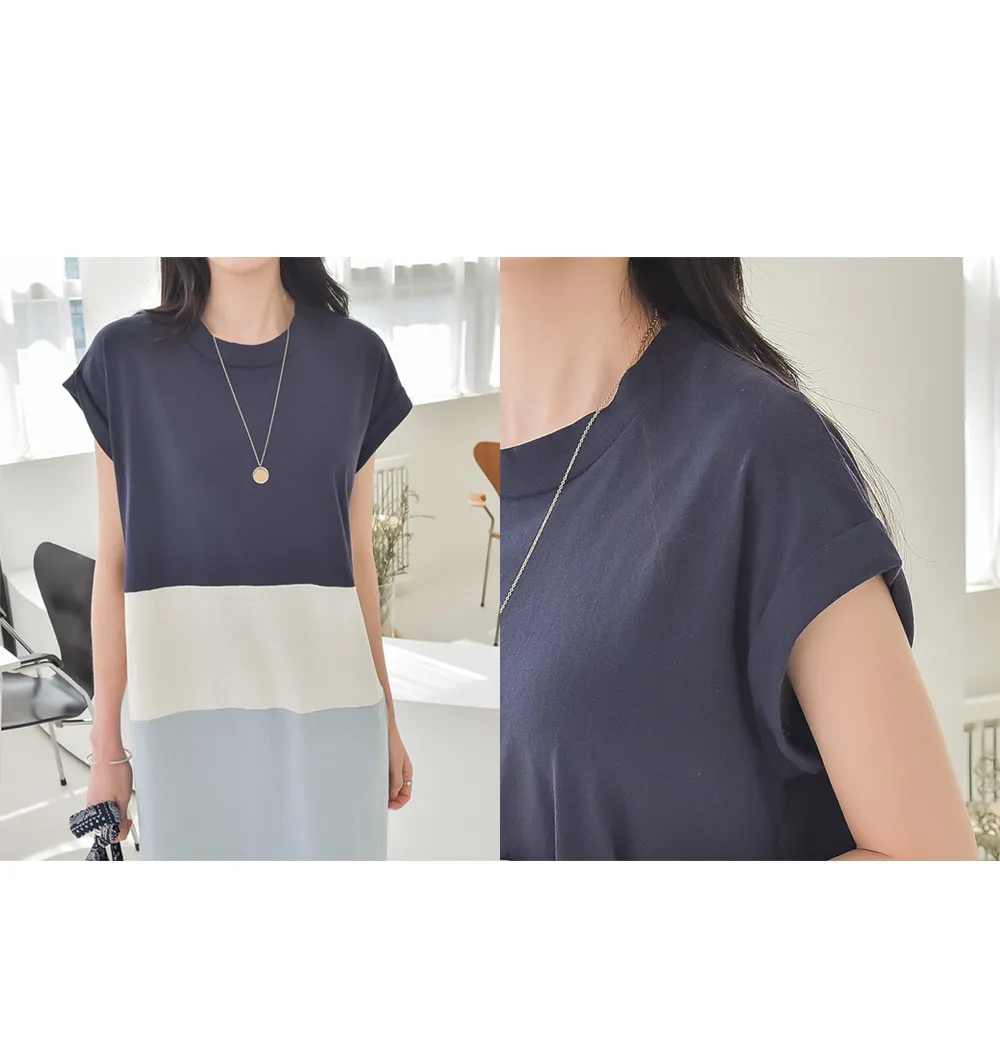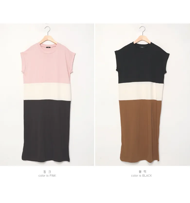 カラーブロックキャップスリーブワンピース・p139699