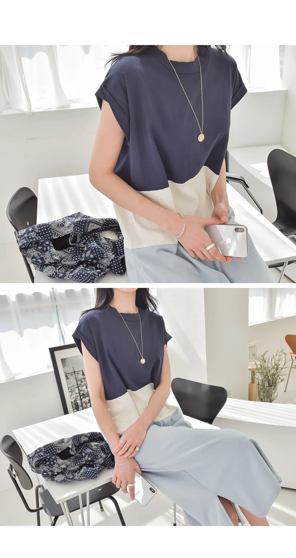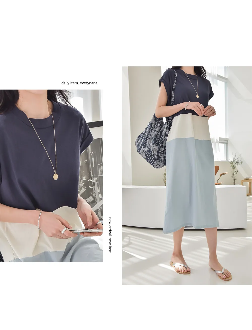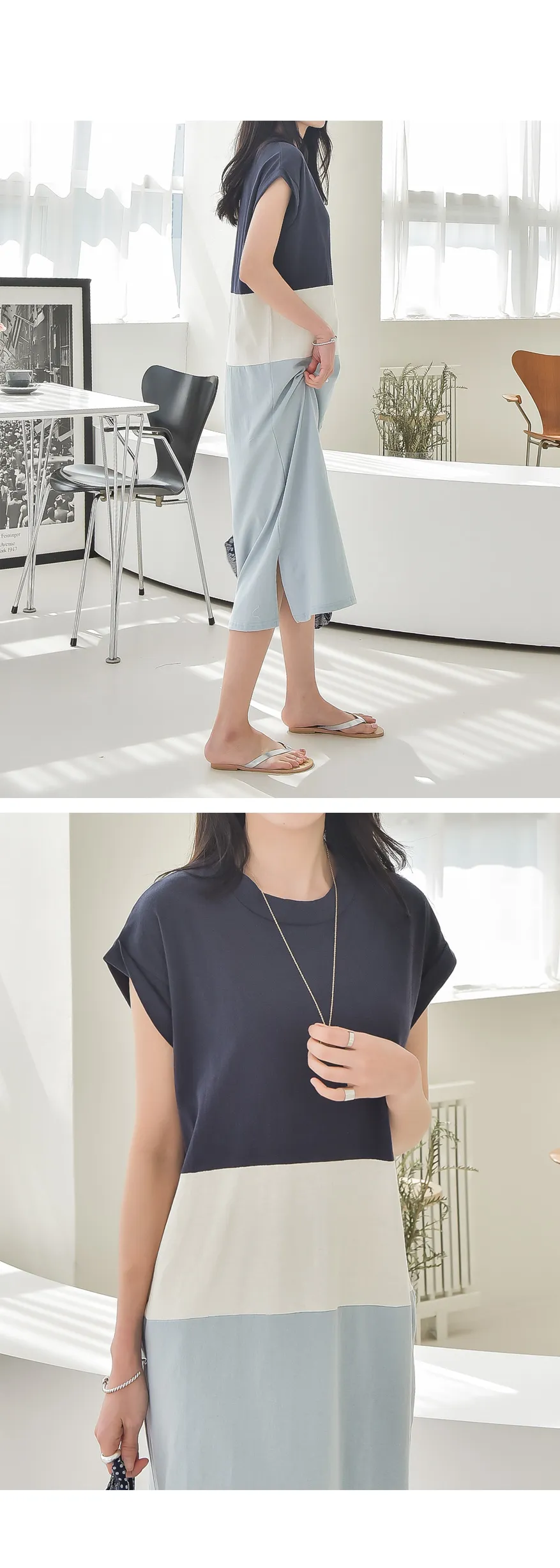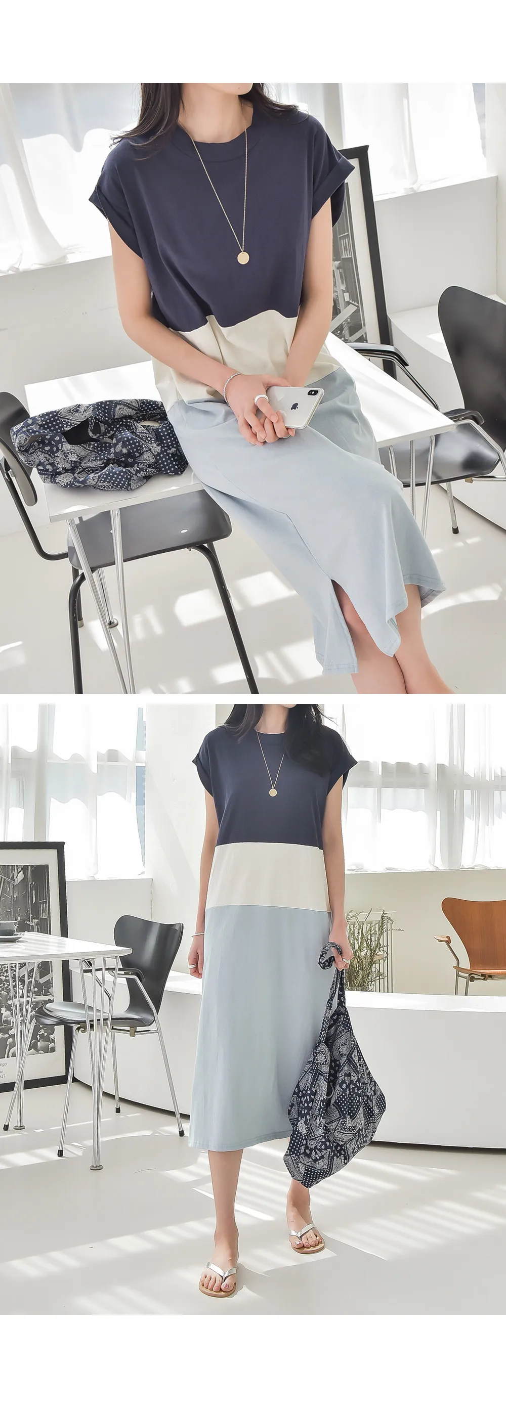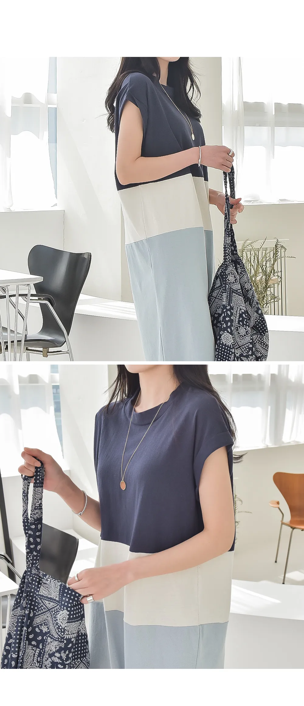 カラーブロックキャップスリーブワンピース・p139699