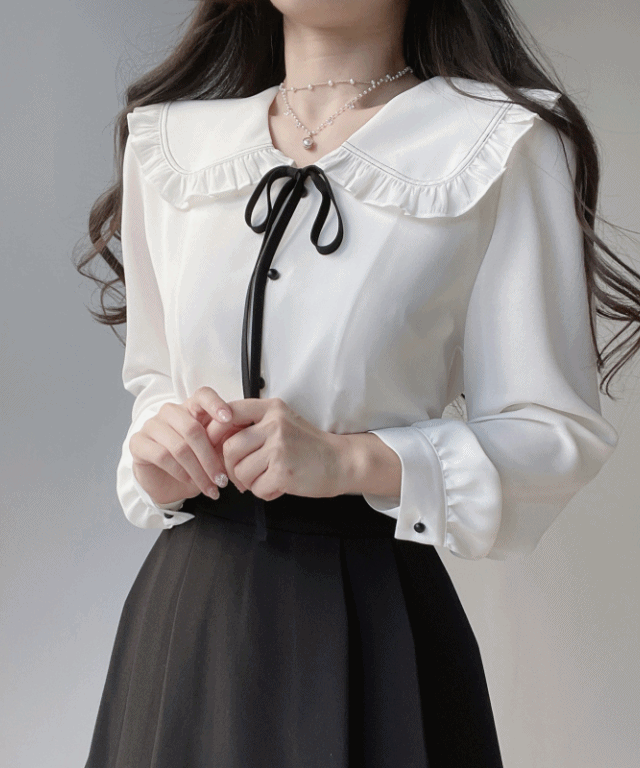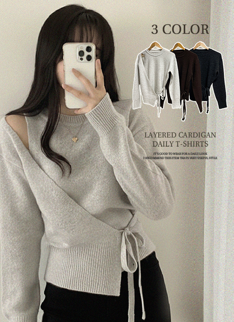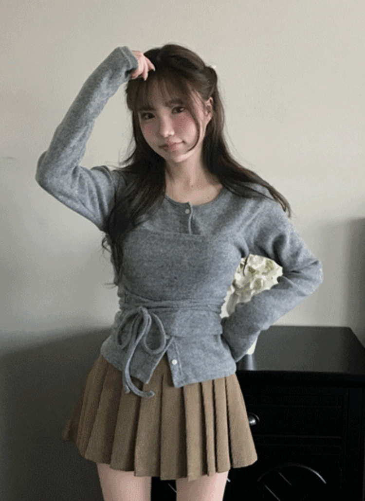 レイヤードボタンラウンドネックリボンカラーチューブトップカーディガン