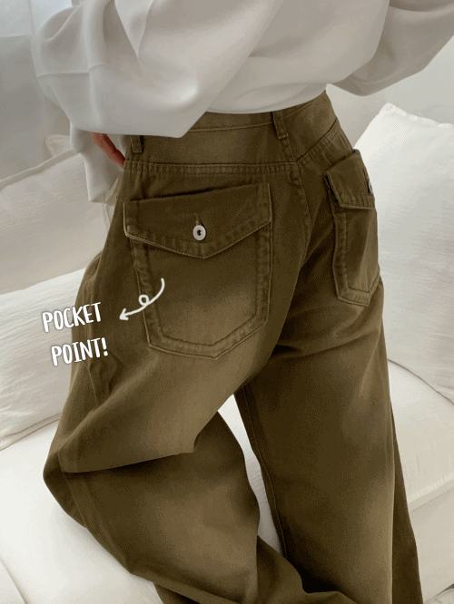 コットンジップアップウォッシングポケットフラップポケットワイドスナップボタンバックポケットパンツ