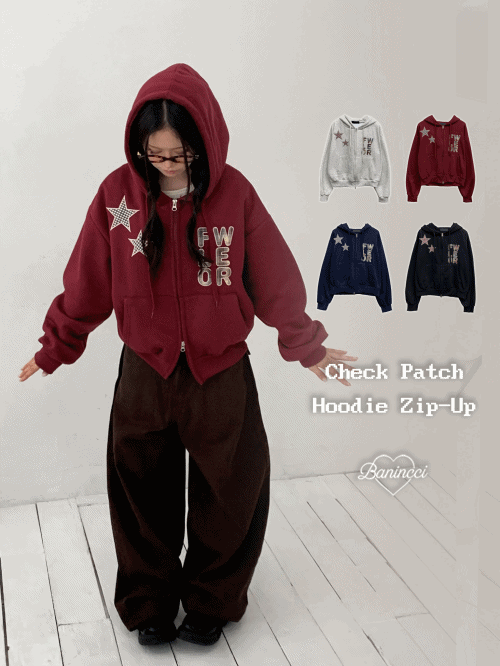 裏起毛フードドローストリングダブルジップオーバーサイズカンガルーポケットロゴプリントチェック星柄ジップパーカー