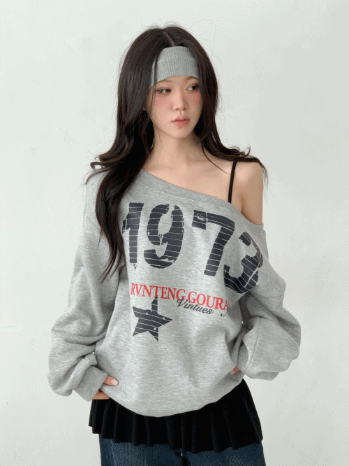 裏起毛ワンショルダールーズオーバーサイズレタリングロゴプリントスウェット