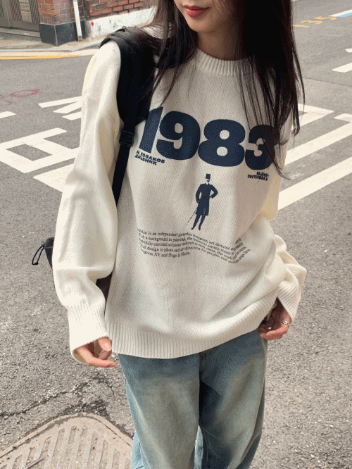 アクリルオーバーサイズルーズ長袖レタリングプリントナンバーニット