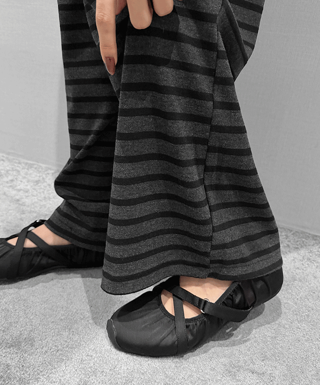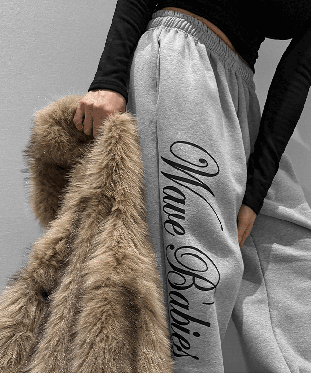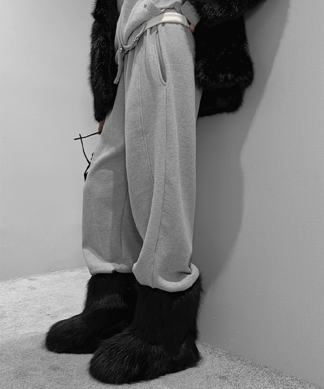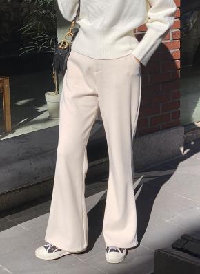 ファー裏地ニットリブワイドストレートウエストゴムパンツ