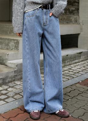 裏起毛ノンフェードノンウォッシュポケットワイドデニムパンツ