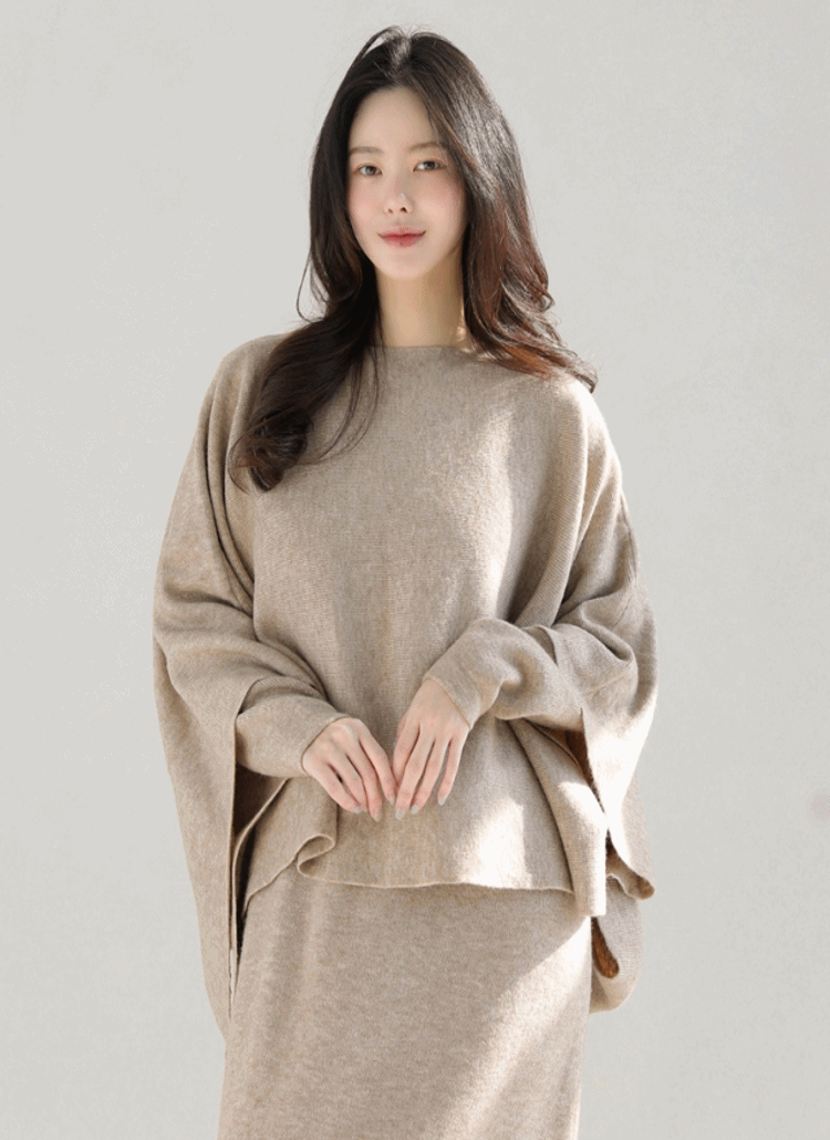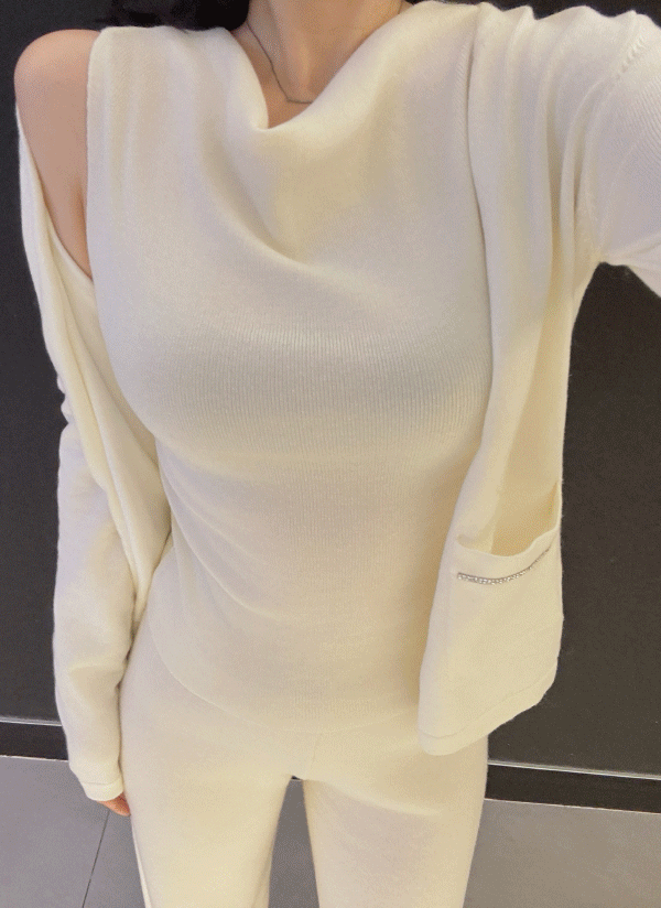 ニットケープラウンドネック長袖スリムゴールドボタンタートルネックフェイクボタンアンサンブルニット