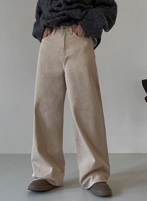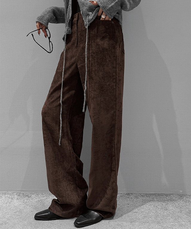 ファー裏地コーデュロイドローストリングウエストゴムストレートパンツ
