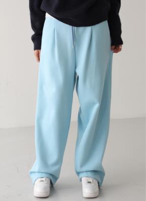 裏起毛ウエストゴムドローストリングワイドサイドピンタックカラーパンツ