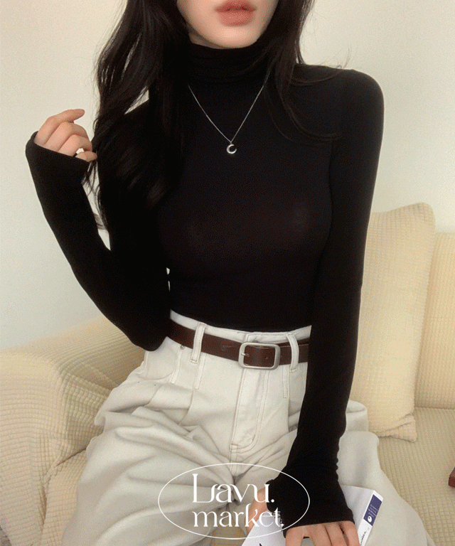 ストレッチシースルースリム長袖ウォーマータートルネックTシャツ