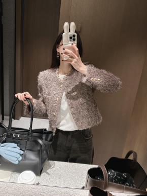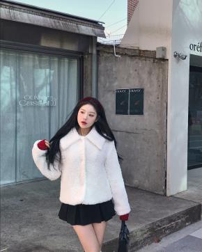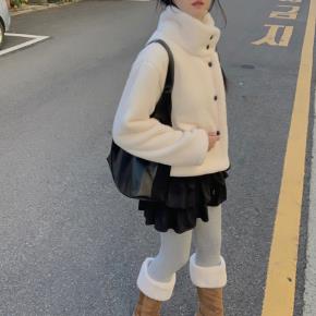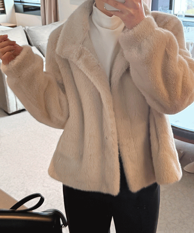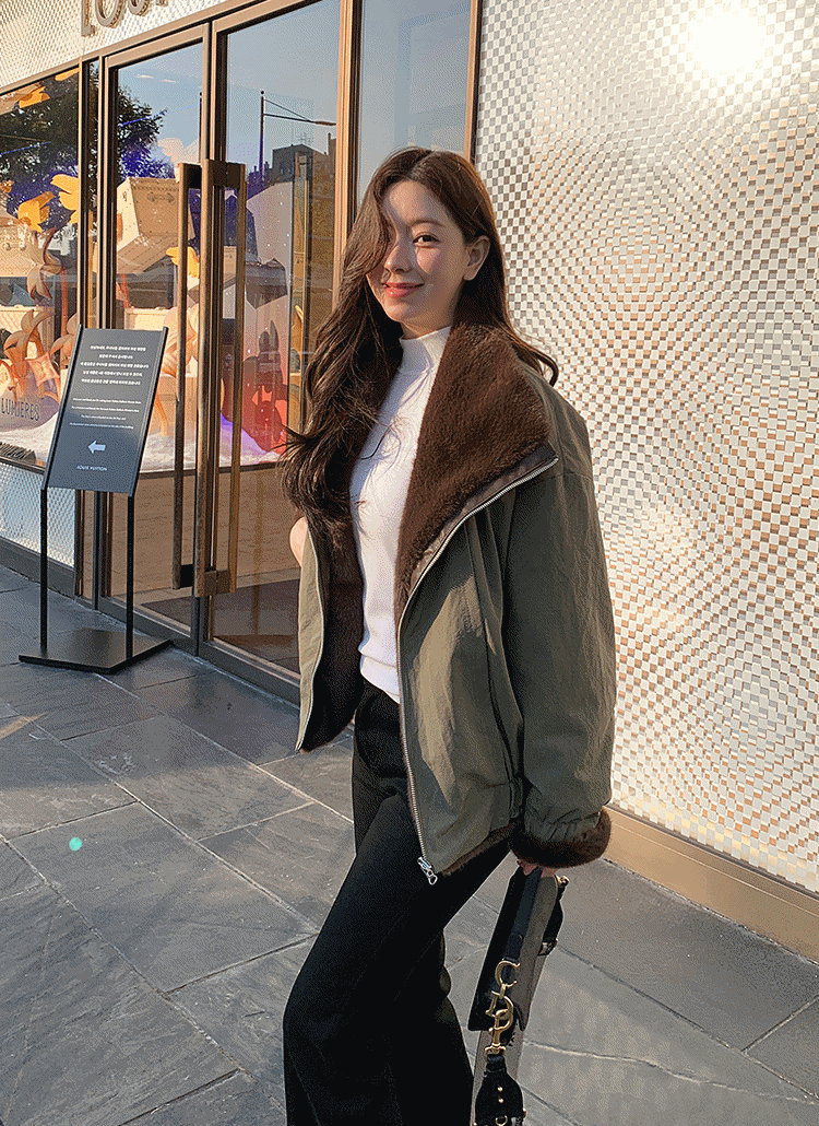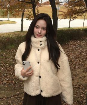 エコファーハイネックポケットショート長袖マグネットボタンジャケット