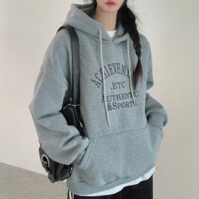 裏起毛ルーズフードドロップショルダーカンガルーポケットレタリング刺繍パーカー