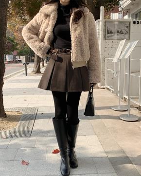 ウール混ミニAラインプリーツカラースカートベルト付