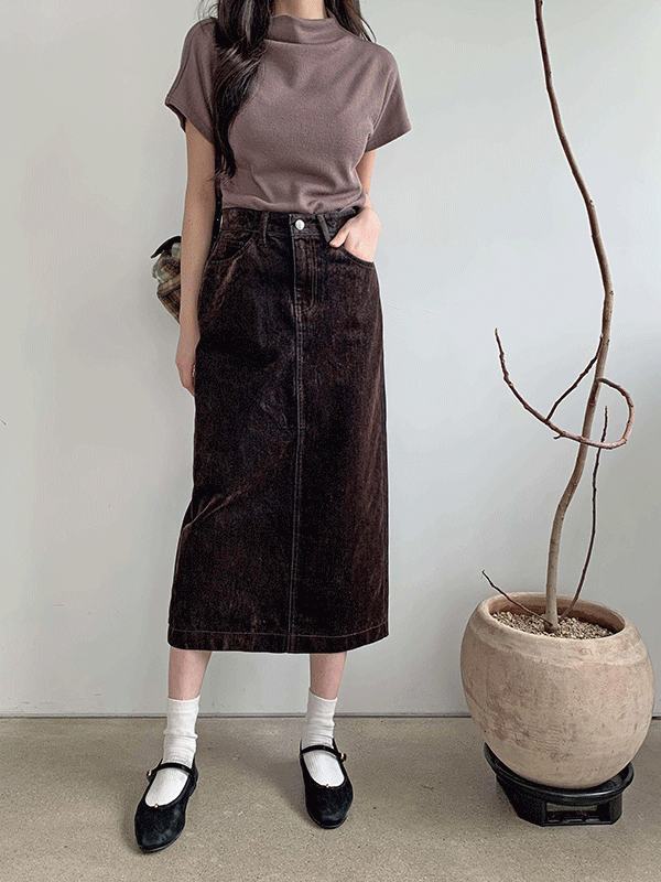 ベロアデニムスリットウエストゴムロングデニムスカート
