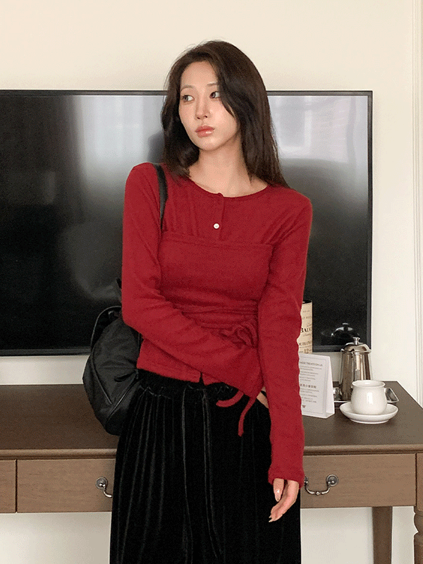スクエアネックボタンシャーリングドローストリングカラーTシャツ