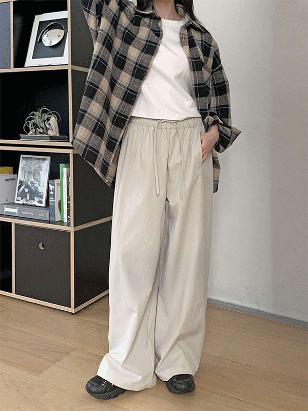ウール混ラッフルポケットロングワイドループバックストラップ無地スラックス