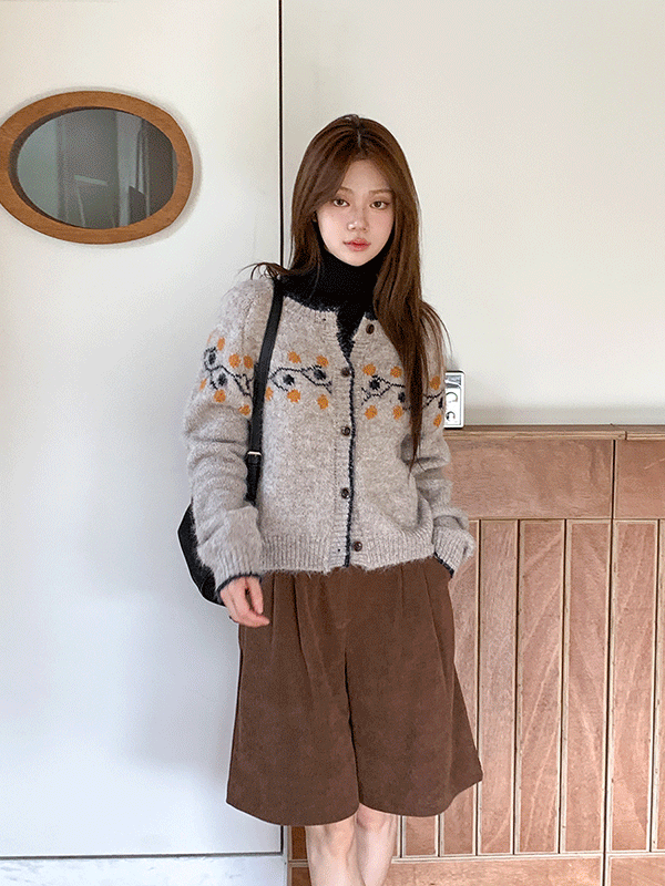 ウール混ラウンドネックケーブルクロップドカーディガン