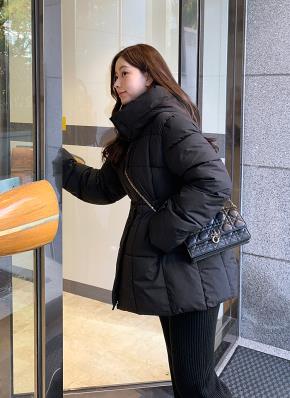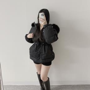 キルティングエコファージップアップカラードローストリングポケット長袖ダウンジャケットファーセット