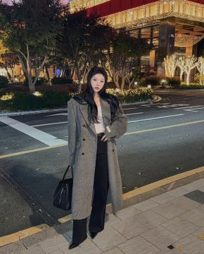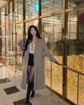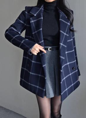 カシミヤ混ウール混カラーハーフボタンチェックコート