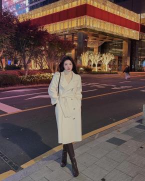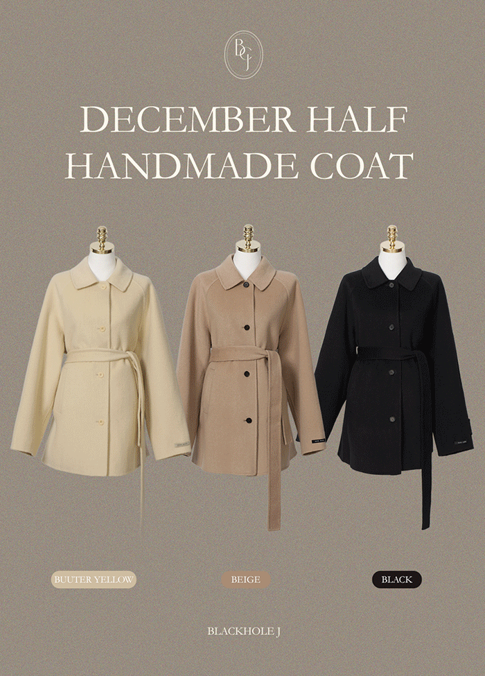ウール混カシミヤ混ボタンカラーポケット長袖ハーフコートストラップ付