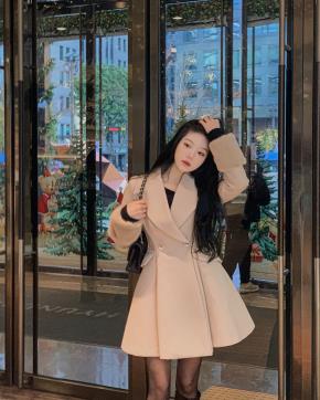 キルト風ウール混カラーアジャストダブルボタンカラーコート