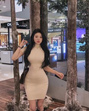 リブストレッチタートルネックスリム長袖ミニワンピース