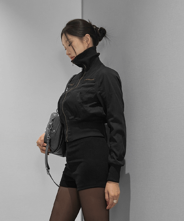 カラーハイネックハーフネックアジャストダブルジッパーカラーコート
