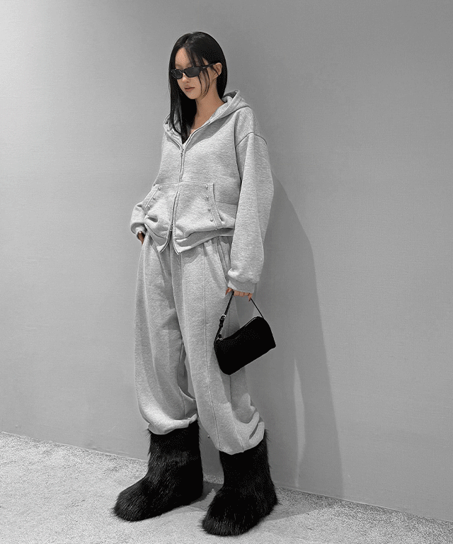裏起毛コットンフードドローストリングダブルジップウエストゴムルーズ長袖ワイドジョガーセットアップパンツジップパーカートレーニング2WAY