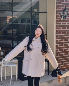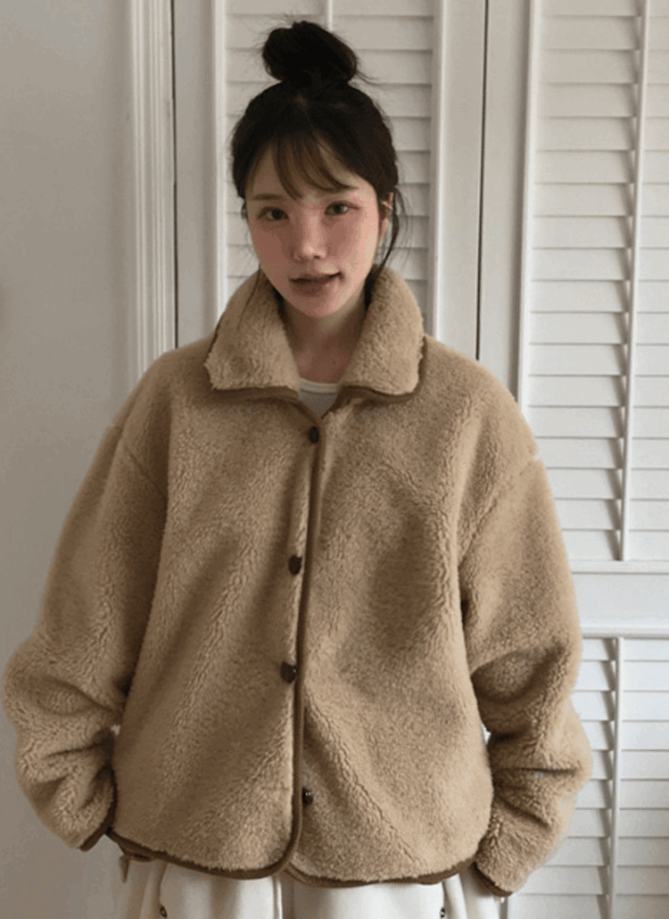 エコファーカラートグルボタンショート長袖ジャンパーコート