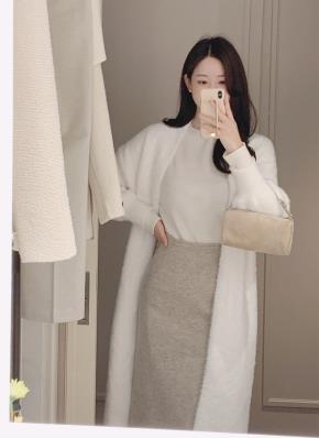 起毛ウール混ジップアップスリットポケットロングスカート