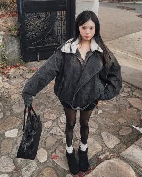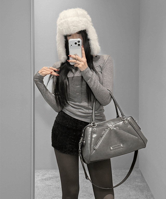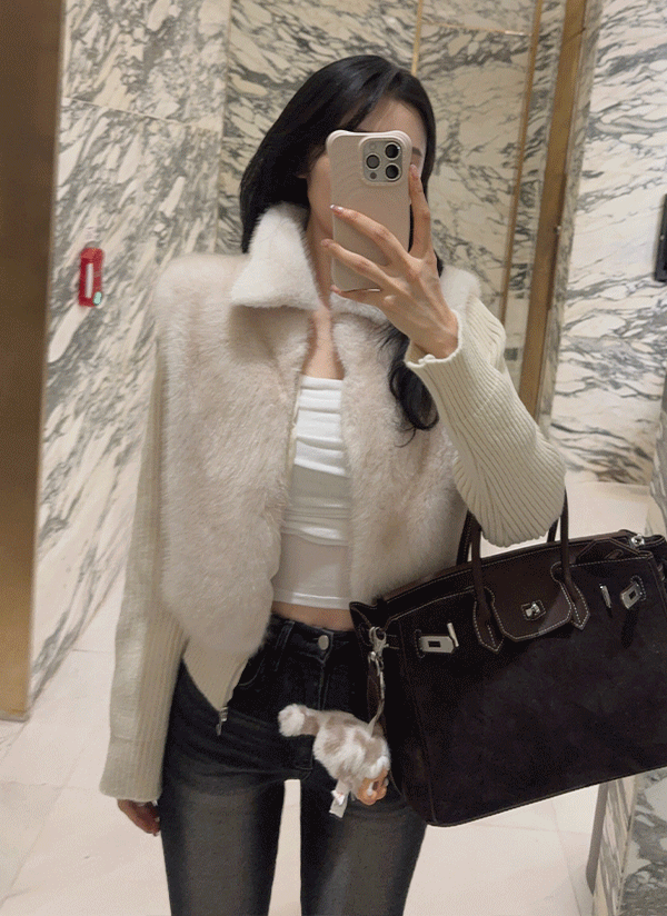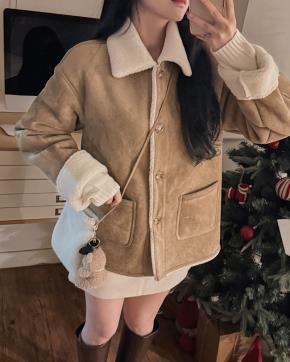 エコファーハーフスナップボタンジャケットショルダーバッグ