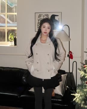 ボアハイネックバックルオーバーサイズダブルボタンジャケット