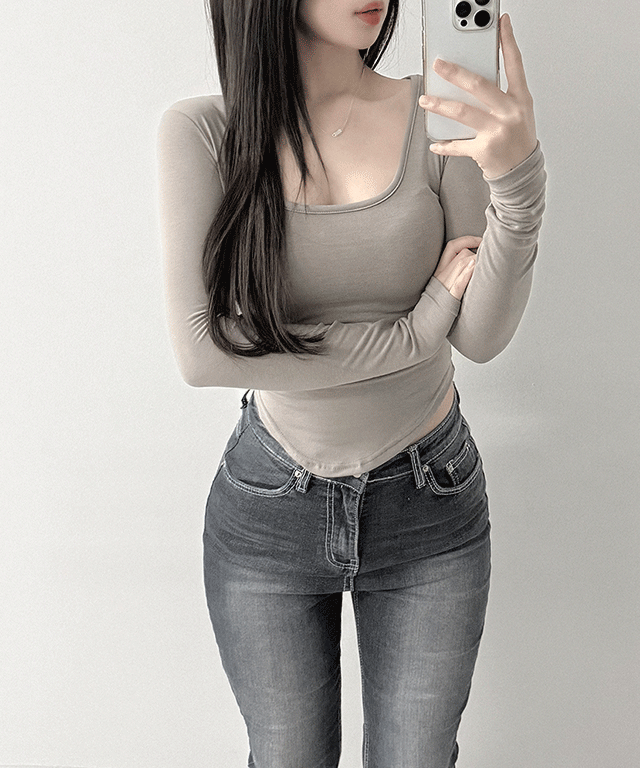 ストレッチウール混ラウンドネック長袖スリムTシャツ