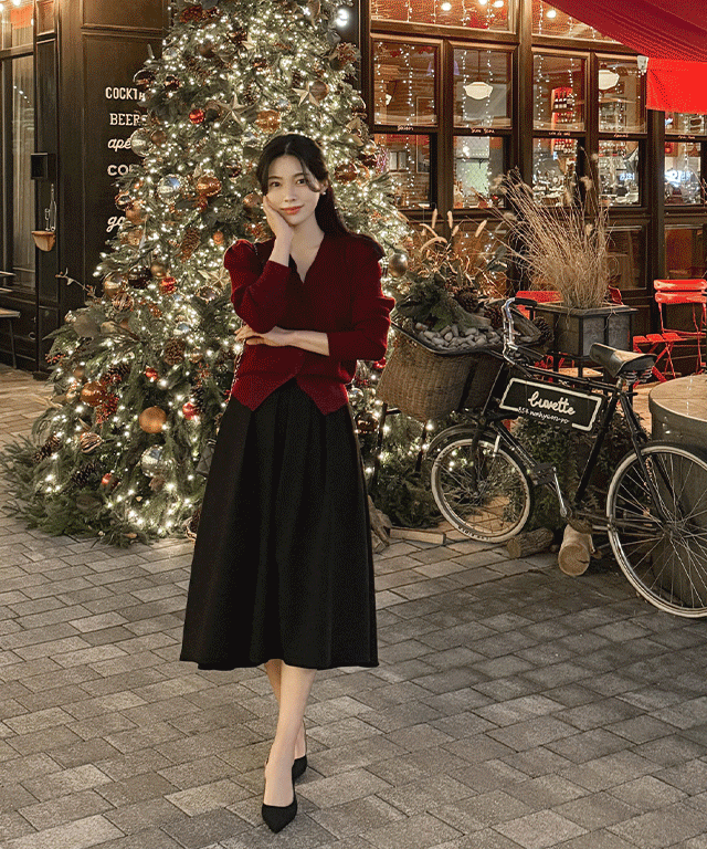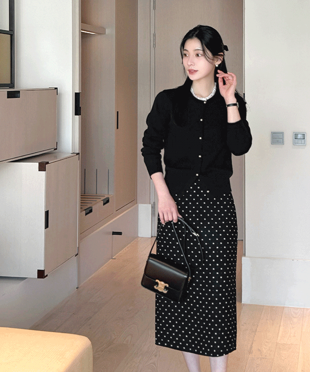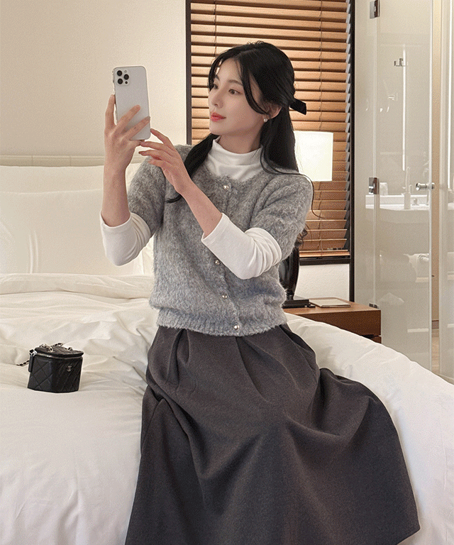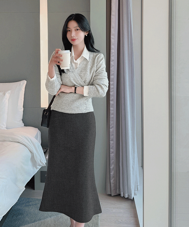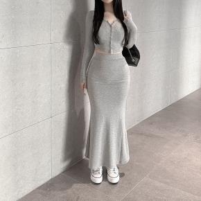 裏起毛ストレッチボタンラウンドネックウエストゴムロング長袖マーメイドセットアップスカートカーディガントレーニング