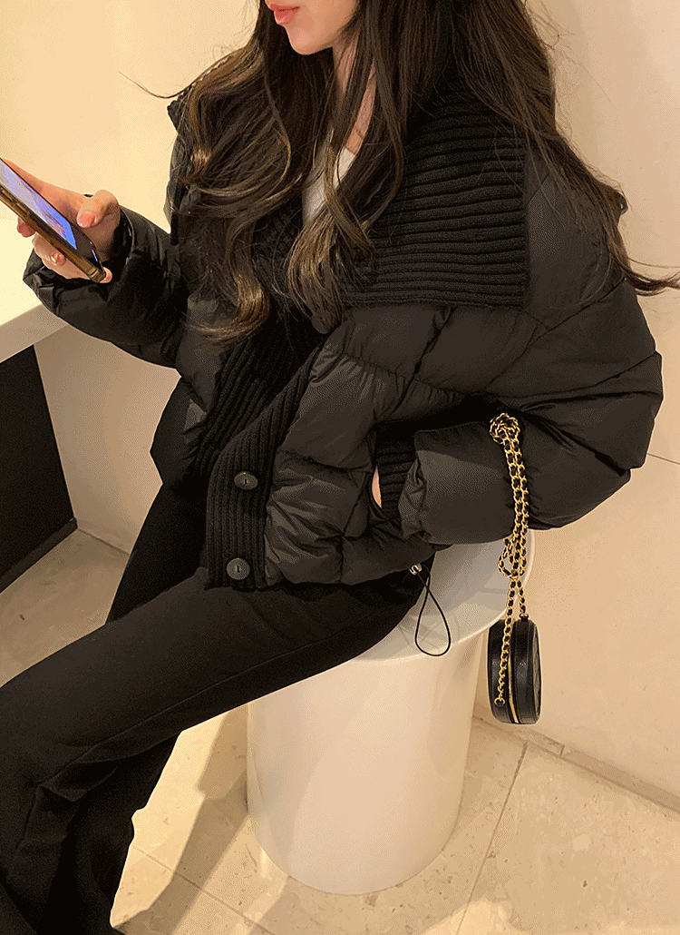 中綿コンビニットショートカラー長袖ドローストリングポケットジップアップダウンジャケット