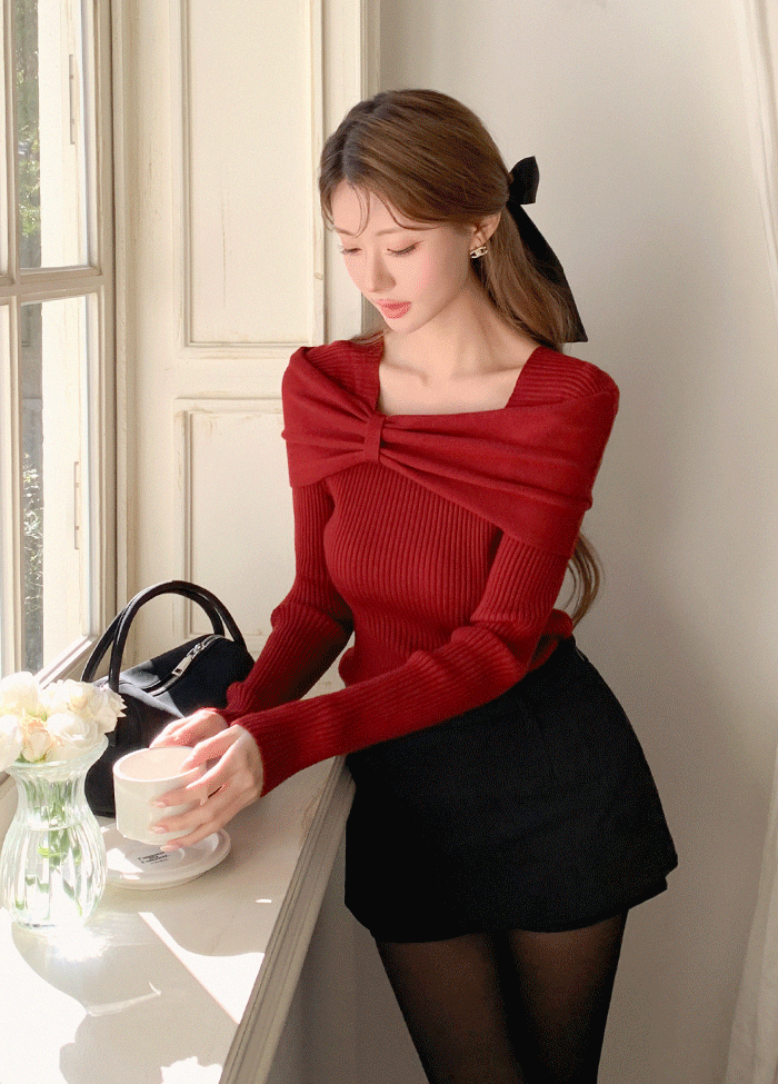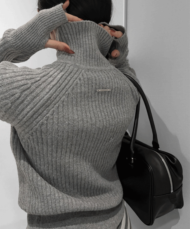 ソフトリブハーフネックタートルネック長袖ニット2TYPE