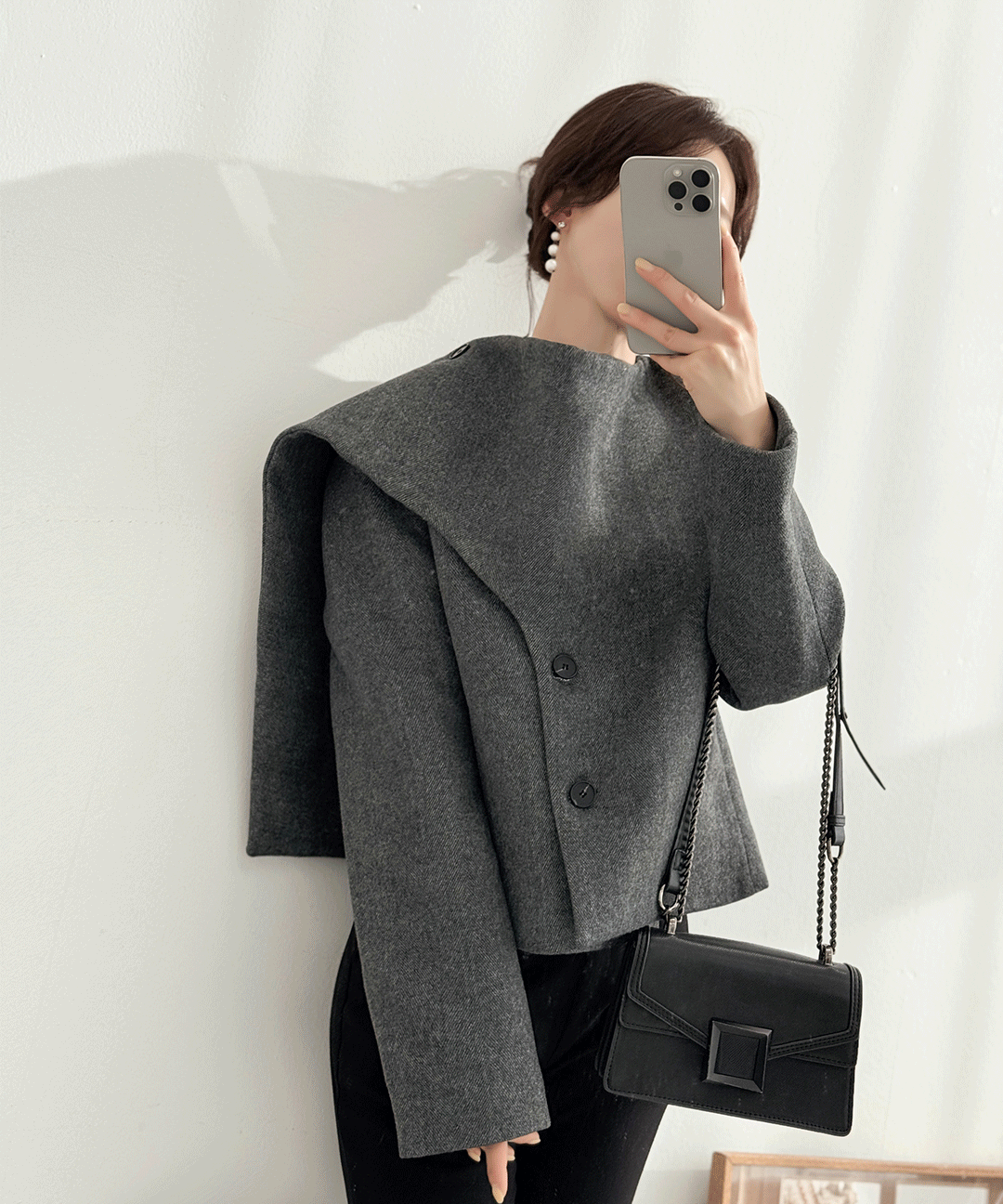 ウール混ドレープセミクロップドダイアゴナルボタンジャケット