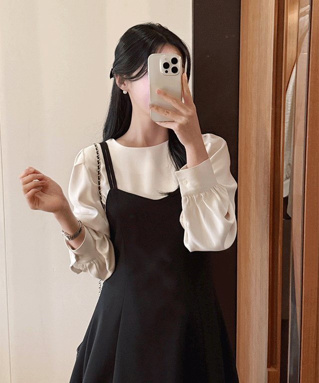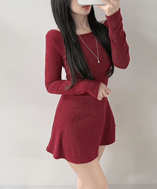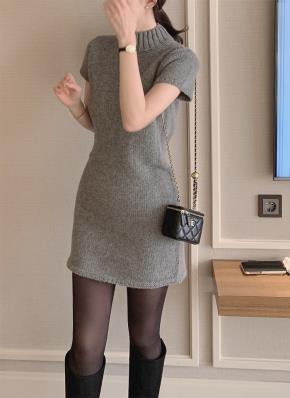 裏起毛ストレッチスリム長袖スナップボタンミニギャザーワンピース
