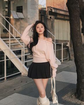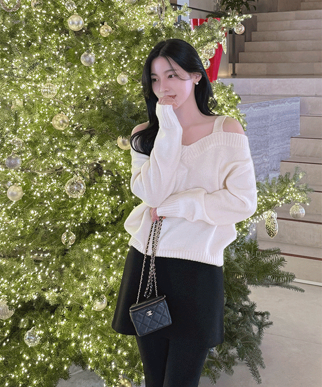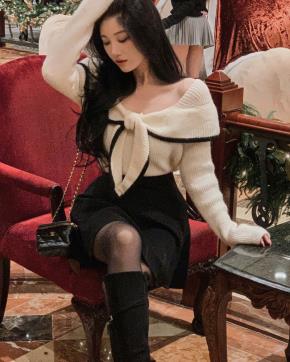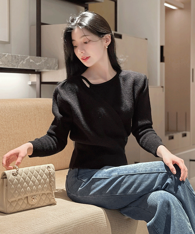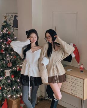 オフショルダーVネックホルターネックリボンボタンカラーカーディガン