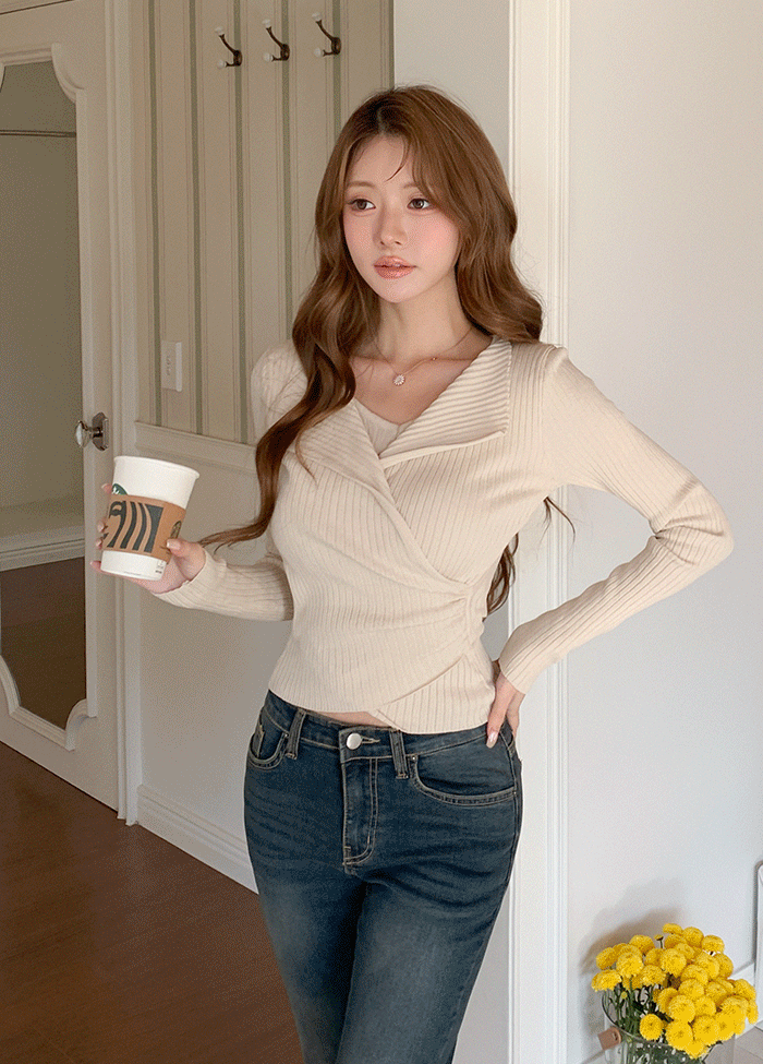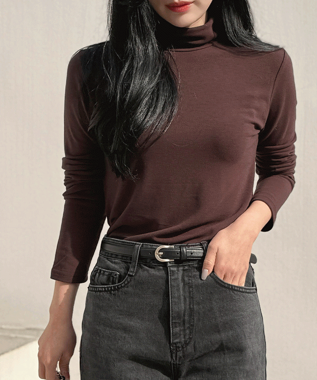 リブタートルネックスリムボタンスリーブカラーニット
