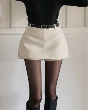 スエード調ジップアップスリムラップ調ショートスカートパンツ