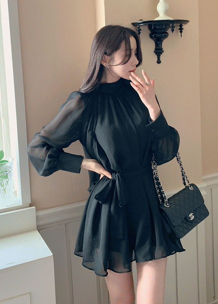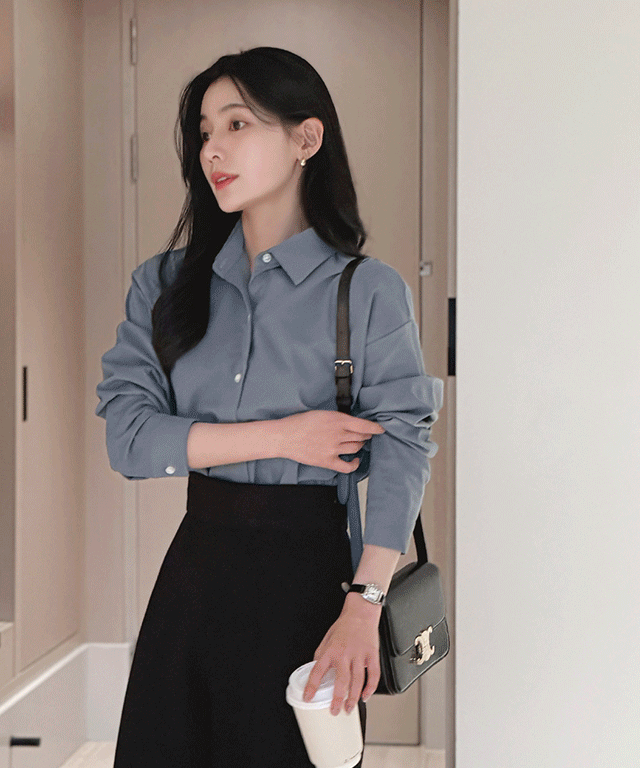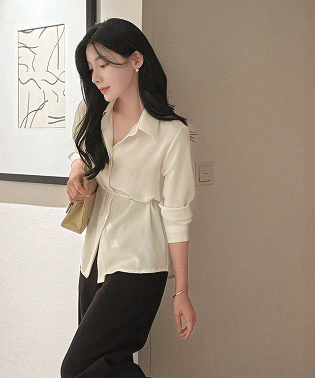 長袖ルーズボタンカラーブラウスストラップセット(バックルあり)