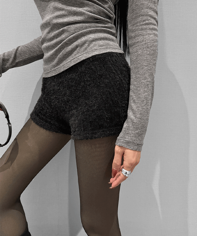 アンゴラ混ストレッチウエストゴムショートショートパンツ