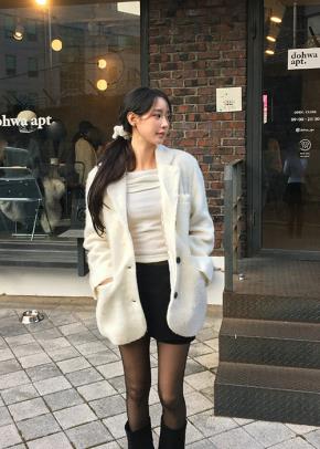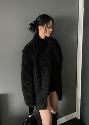 ボアスエードムートンフードボタンポケットドローストリングダブルジップオーバーサイズコート